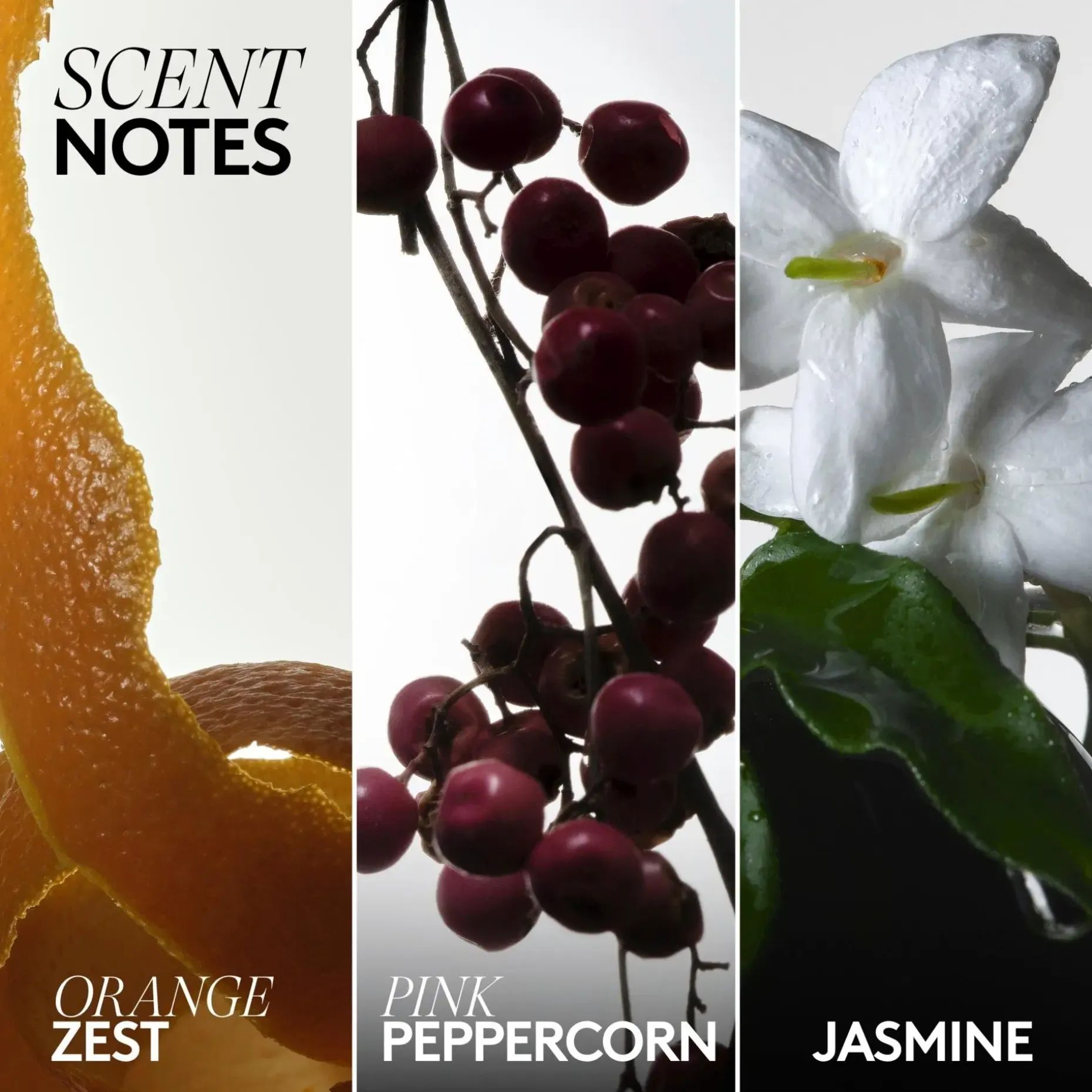 – Hey, Bouquet: Asenne – joka puolella. Ruusu, jasmiini ja vanilja flirttailevat santelipuun kanssa, kun taas appelsiininkuori ja vaaleanpunainen pippuri tuovat mausteisuutta. Leiki molemmilla puolilla tuoksulla,