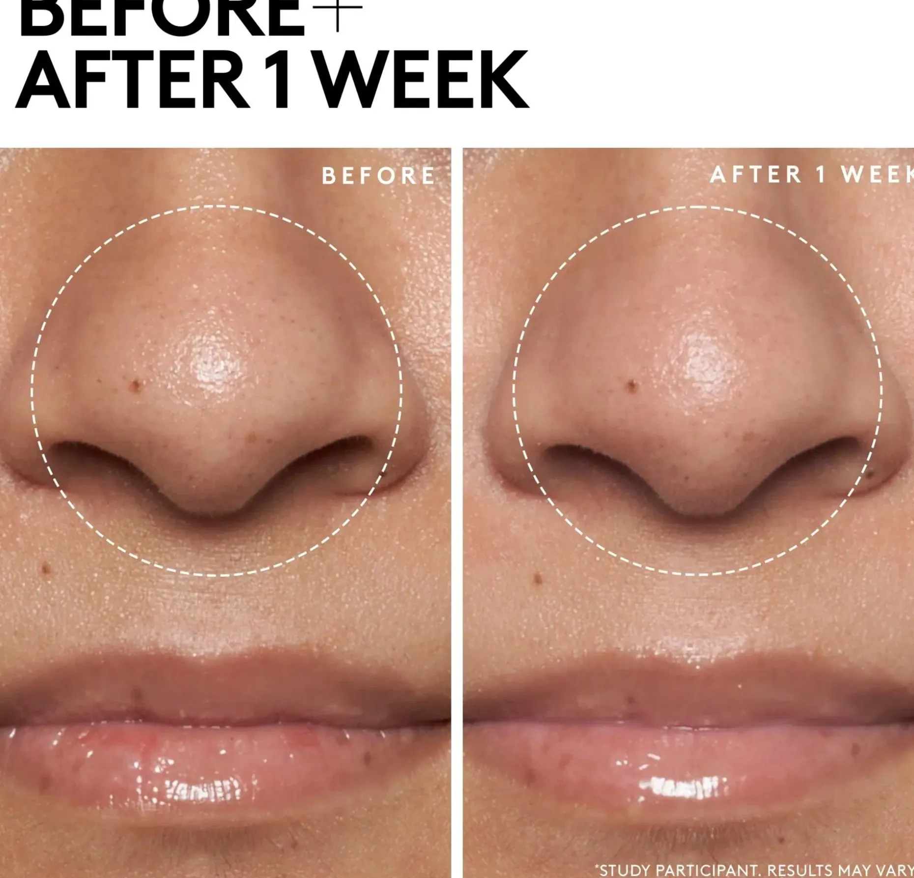 – Vähentää välittömästi ihohuokosten + mustapäiden ulkonäköä.