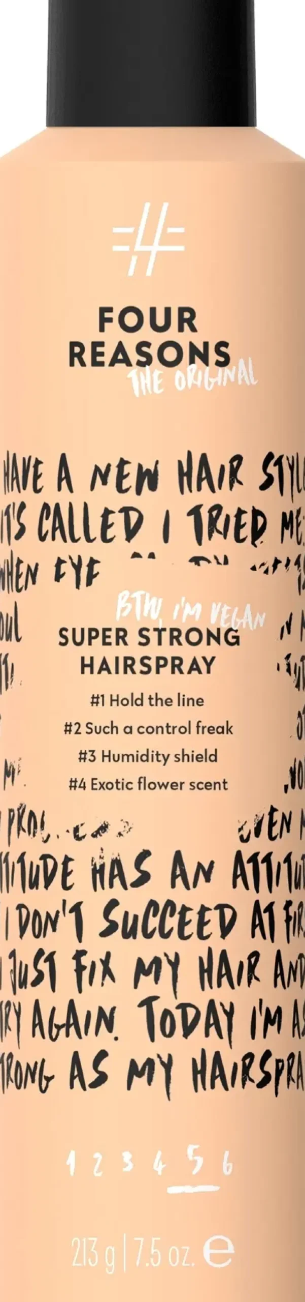 Supervoimakas Four Reasons Original -hiuskiinne kiinnittää kampauksen viimeistelyvaiheessa ja antaa kauniin kiillon. Lakka suojaa kosteudelta ja sisältää hoitavista ominaisuuksistaan tunnettua pantenolia. Eksoottinen kukkaistuoksu!