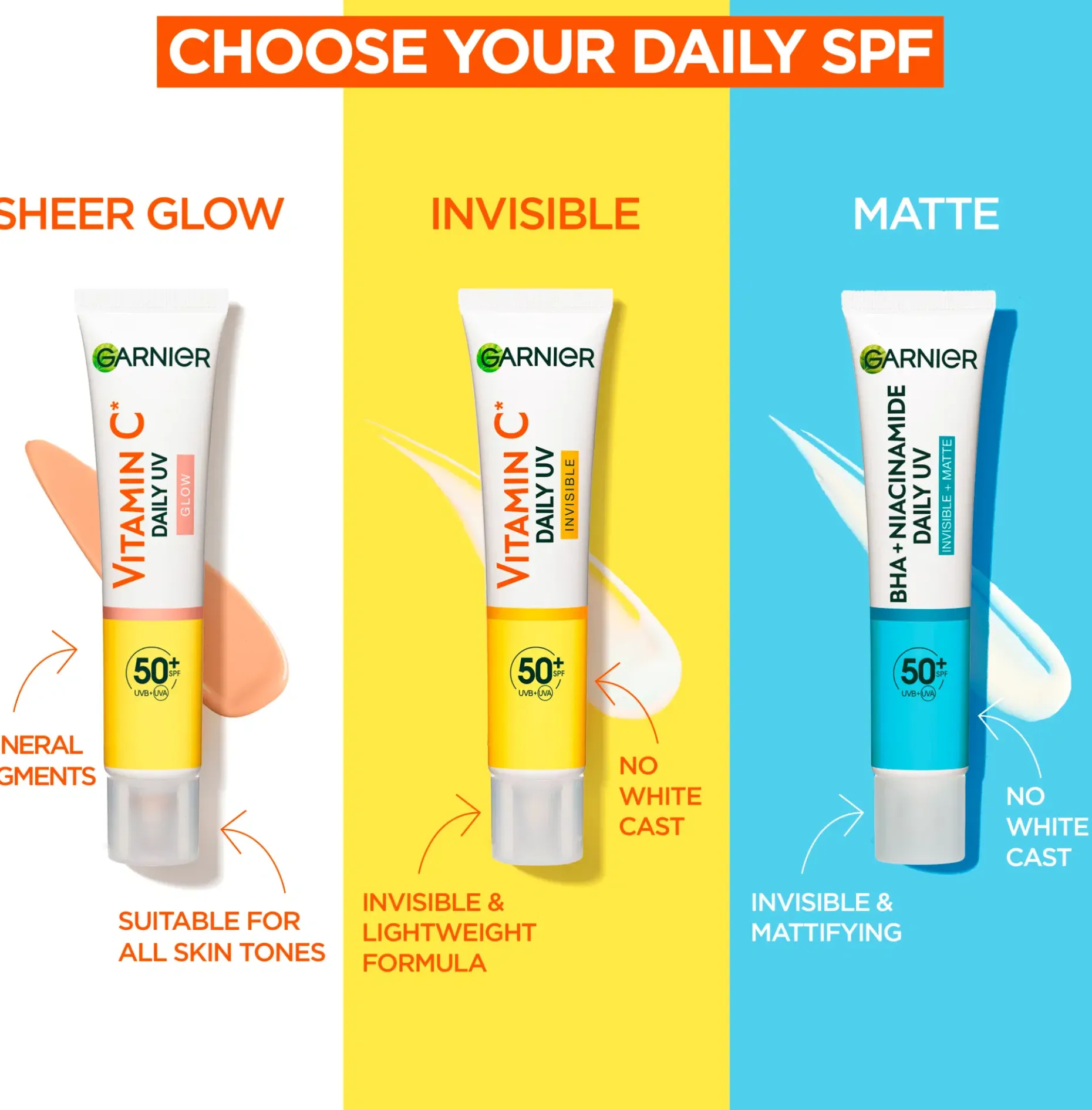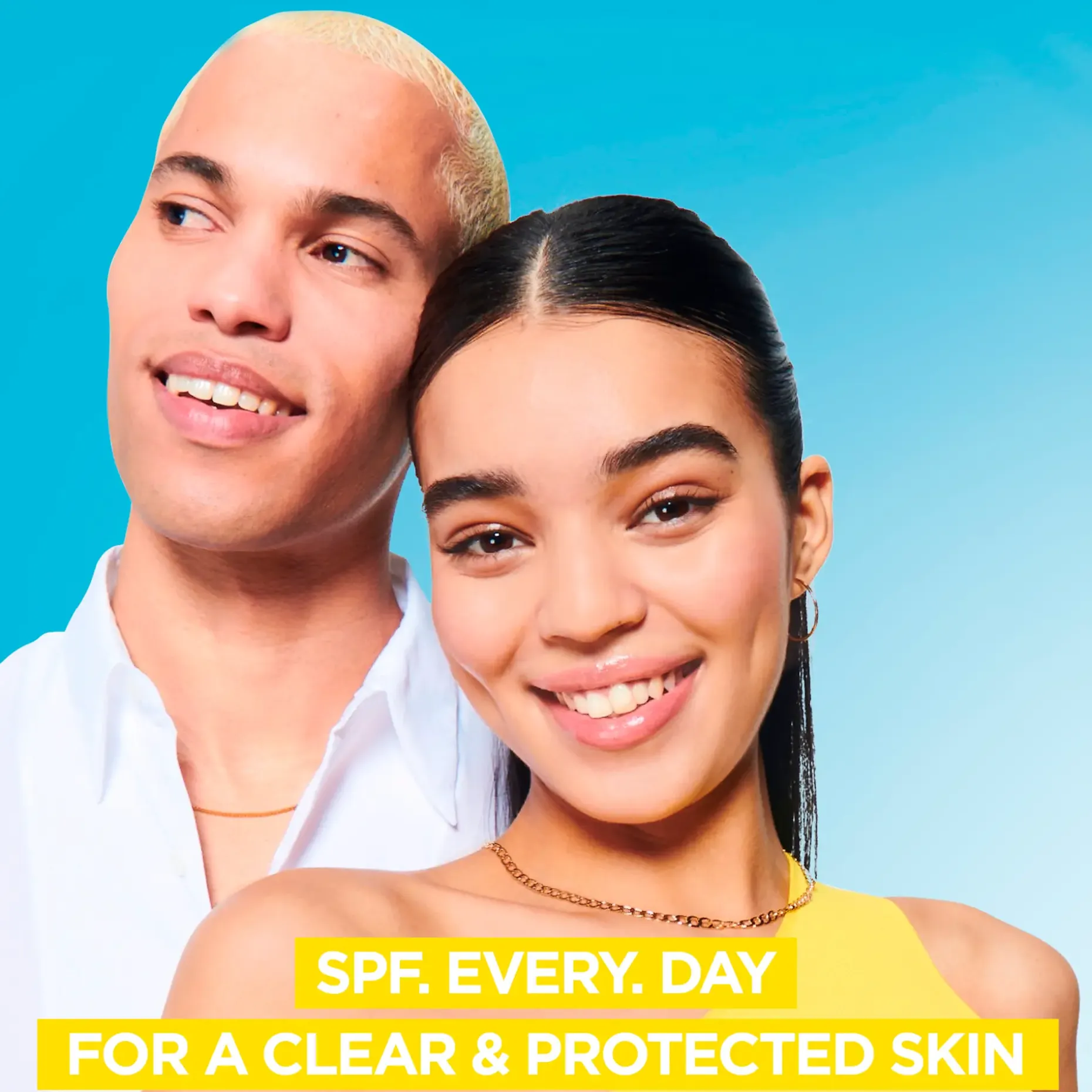 Garnier PureActive Salicylic Anti-Imperfection Daily UV Fluid koostumus kasvoille päivittäiseen käyttöön erittäin korkealla aurinkosuojalla. Kevyt, nestemäinen koostumus sisältää [SALISYYLIHAPPOA + NIASIINIAMIDIA] ja SPF50+, vähentämään epäpuhtauksia, ihohuokosten näkyvyyttä ja aknen jättämiä jälkiä sekä suojaamaan ihoasi UVB-, UVA- ja pitkiä UVA-säteitä vastaan. Hajusteeton koostumus on näkymätön kaikilla ihon sävyillä, ei tuki ihohuokosia, tuntuu kevyeltä iholla ja tekee siitä mattapintaisen koko päiväksi. DOKUMENTOIDUT TULOKSET: -66% epäpuhtauksia, -32% tummia läiskiä, -31% ihohuokosten näkyvyys* • Koostumus sisältää SALISYYLIHAPPOA + NIASIINIAMIDIA] ja SPF50+ • Taistelee epäpuhtauksia ja tummia läiskiä vastaan • Vähentää ihohuokosten ja aknen jättämien jälkien näkyvyyttä • Antaa suojaa UVB-, UVA- ja pitkiä UVA-säteitä vastaan • Hajusteeton • Näkymätön kaikille ihon sävyille * Kosmeettis-kliininen tutkimus, 34 henkilöä, 8 viikkoa