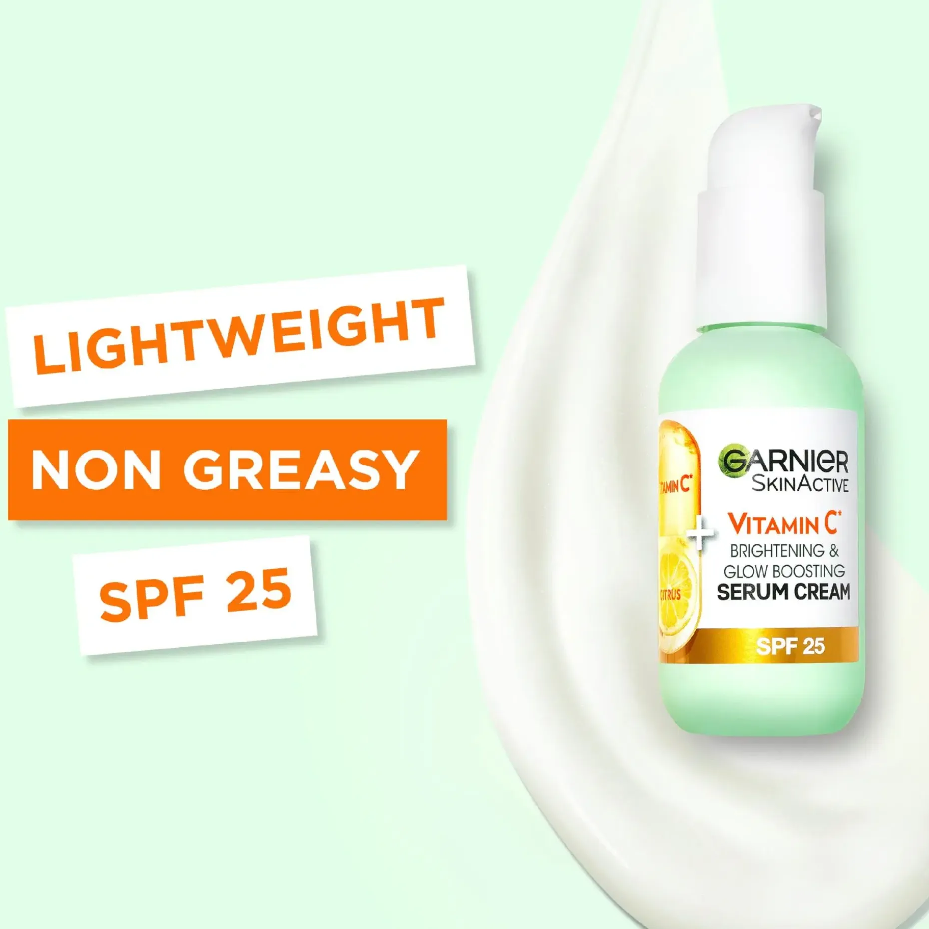 Garnier SkinActive Vitamin C 2-in-1 Brightening Serum Cream 2-in-1 ihonhoitotuote, jonka koostumukseen on tiivistetty 20% seerumia, joka sisältää C-vitamiinia*. Seerumivoide toimii kuin seerumi ja kosteuttaa ihoa samalla voiteen tavoin. Koostumus sisältää C- vitamiinia* ja super sitrusta. C-vitamiini tunnetaan vaikuttavana ainesosana ihonhoidossa ja se auttaa antamaan iholle heleyttä ja vähentämään tummia läiskiä. Super sitrus on uusiutuva ainesosa, joka tunnetaan kyvystään heleyttää ihon sävyä. Garnier SkinActive Vitamin C 2-in-1 Brightening Serum Cream sopii kaikille ihotyypeille, myös herkälle iholle**. Testattu ihotautilääkärien valvonnassa. *Vitamin C = C-vitamiinin johdannainen **Herkällä iholla tarkoitetaan, että iho voi tuntua epämukavalle, kuten esimerkiksi kireälle tai punoittavalle.