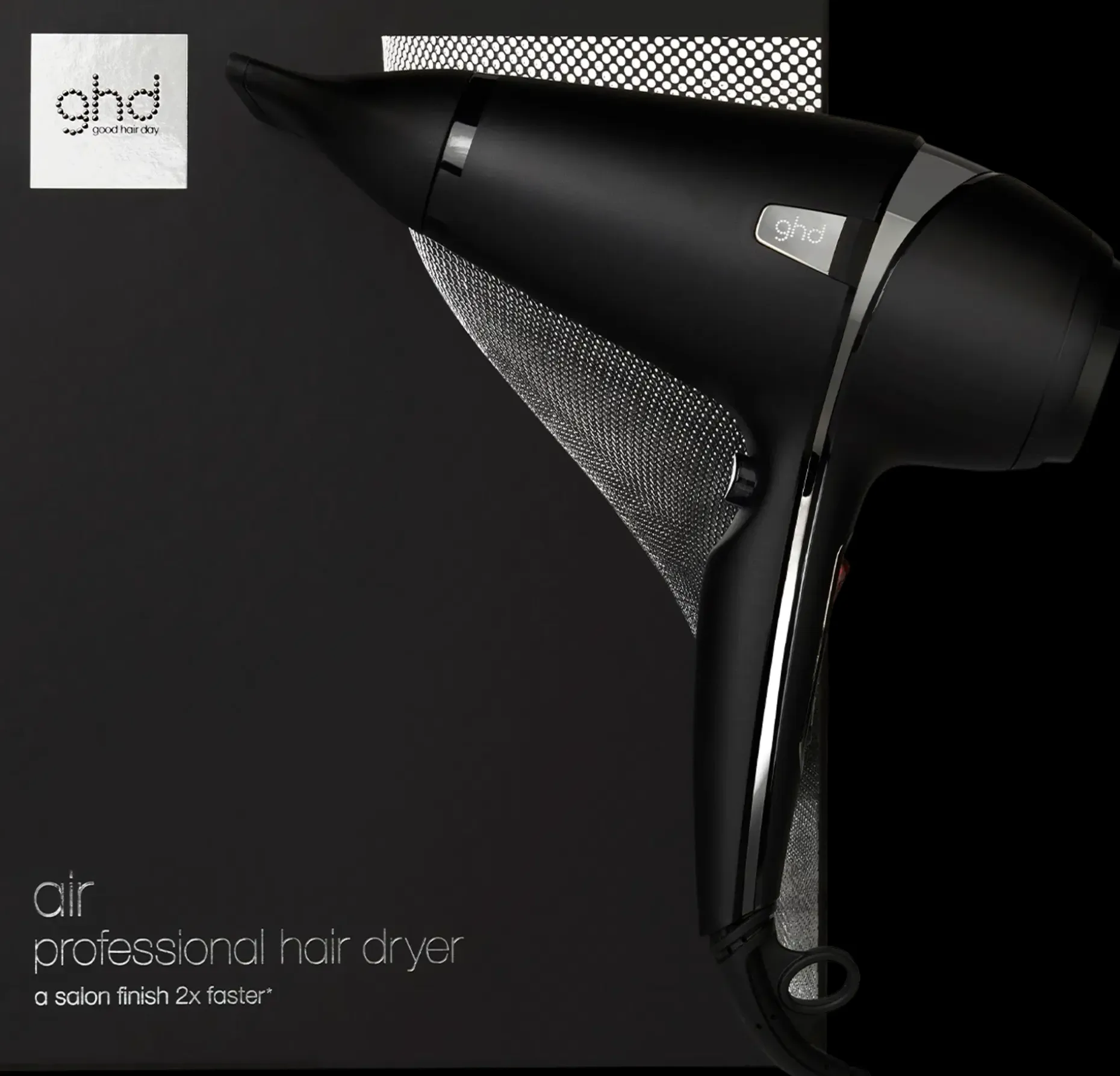 ghd air® professional -hiustenkuivaajalla saat upeat hiukset nopeammin*. Tehokas 2 100 W:n** ammattitasoinen moottori ja patentoitu irrotettava ilmansuodatin antavat korkeapaineisen ilmavirran nopeaan kuivaukseen. Edistynyt ionitekniikka vähentää pörröisyyttä ja sähköisyyttä ja antaa kampaamotasoisen lopputuloksen puolessa ajassa*. Tehon ja lämpötilan säädön avulla voit räätälöidä föönauksen hiustyypillesi sopivaksi. Viileäpuhalluspainike auttaa lukitsemaan valmiin kampauksen paikalleen kylmällä puhalluksella. Ergonominen muotoilu tekee hiustenkuivaajasta mukavan sekä vasen- että oikeakätisille käyttäjille.