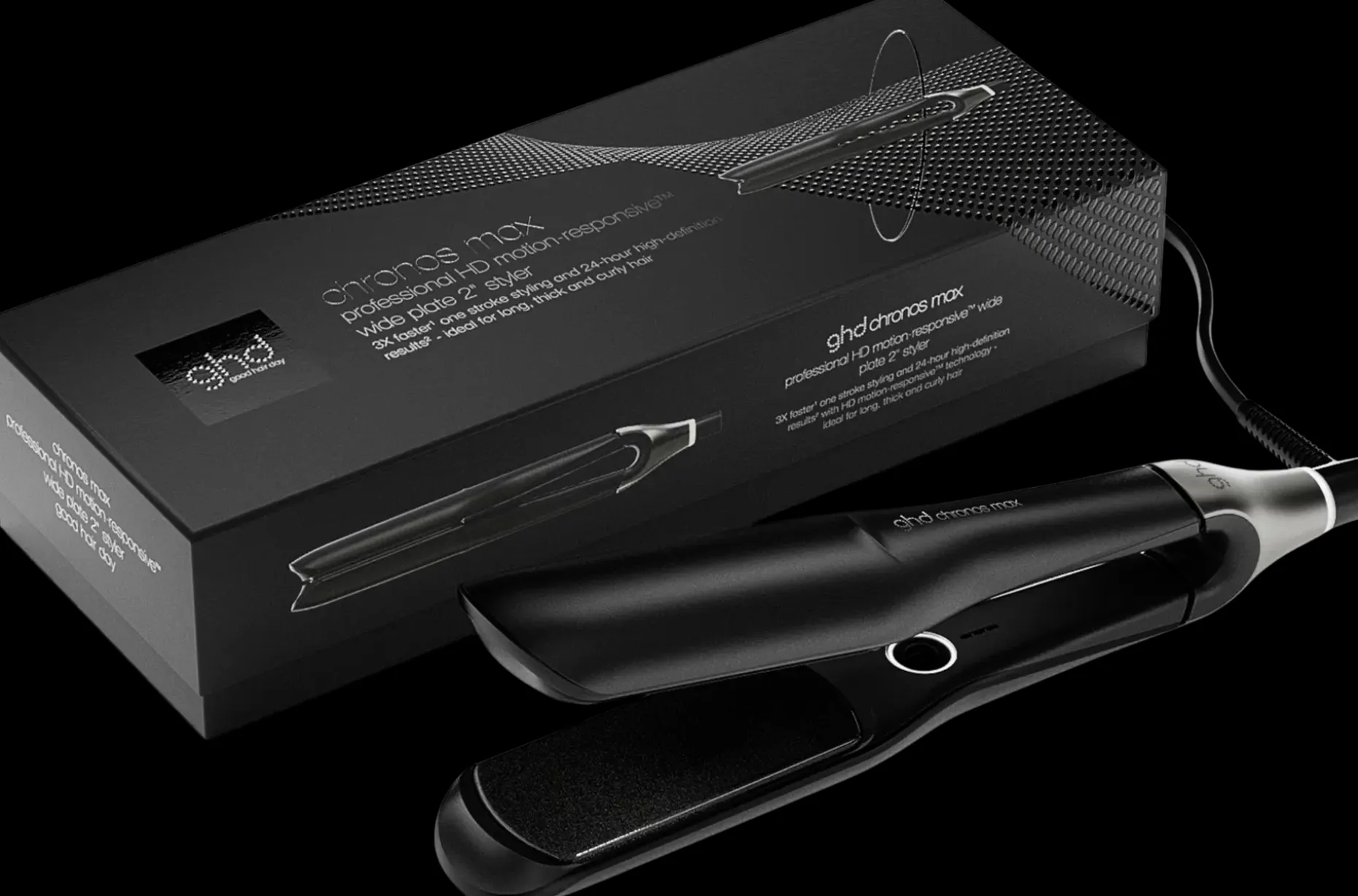 TÄYDELLINEN PITKILLE, PAKSUILLE JA KIHAROILLE HIUKSILLE – ghd Chronos nyt Max-versiona 85 % suuremmalla harjasosalla verrattuna ghd goldiin, mikä tekee siitä täydellisen muotoiluraudan.