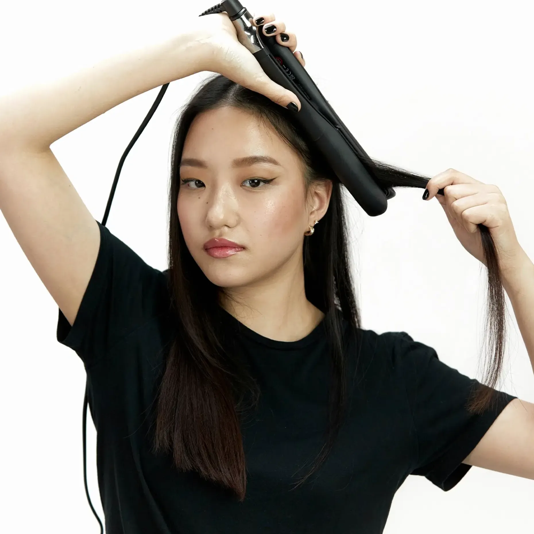 2. Aseta ghd platunum+ -muotoilurauta hiuksiin samansuuntaisesti hiusosion kanssa