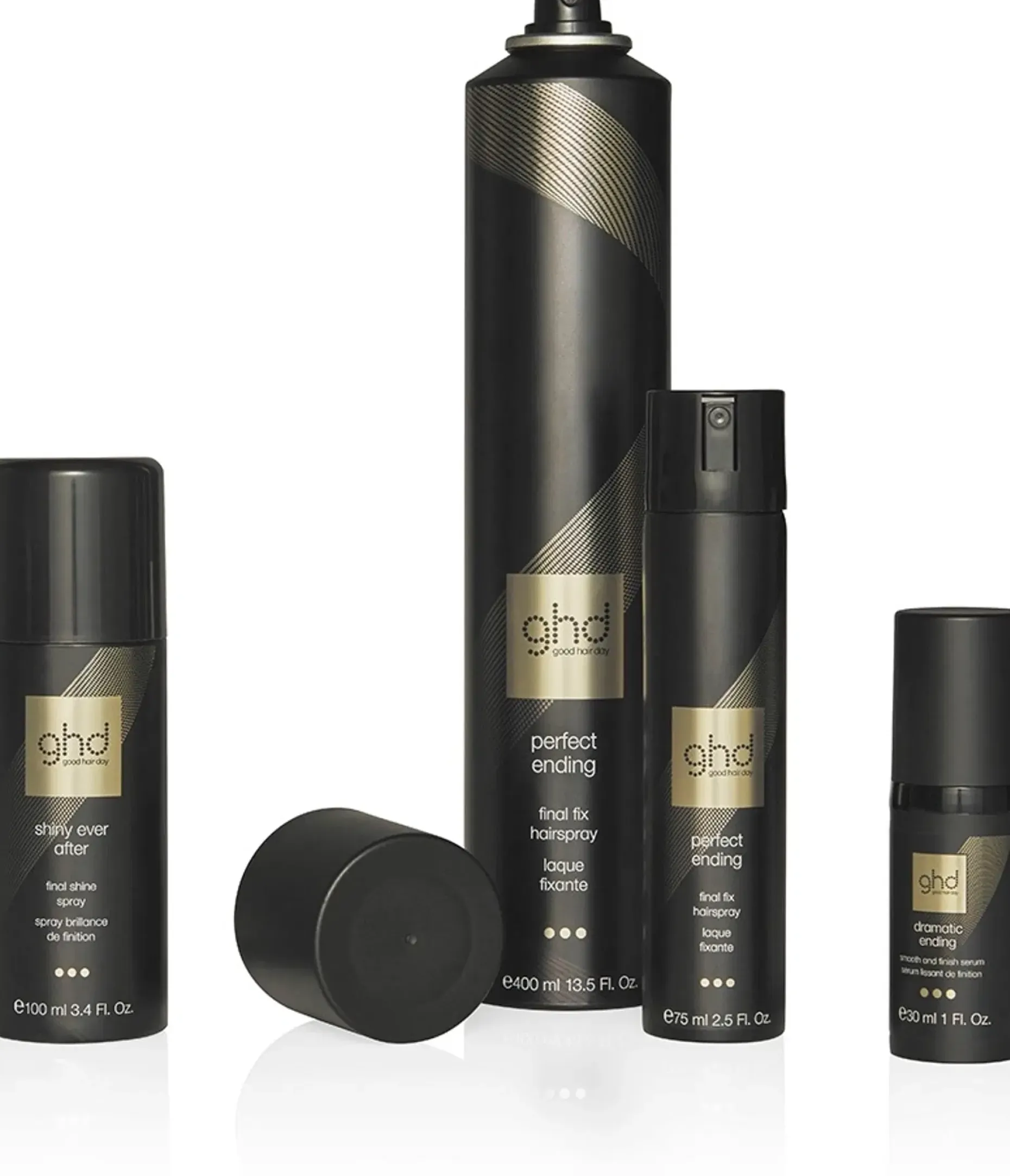 Viimeistele laineet, kiharat tai suorat hiukset ghd shiny ever after -suihkeella. Kevyt hiusmuotoilusuihke lisää tervettä kiiltoa, 9/10 samaa mieltä*, ja auttaa tasoittamaan suortuvia ja hiusten sähköisyyttä kaikissa hiustyypeissä.