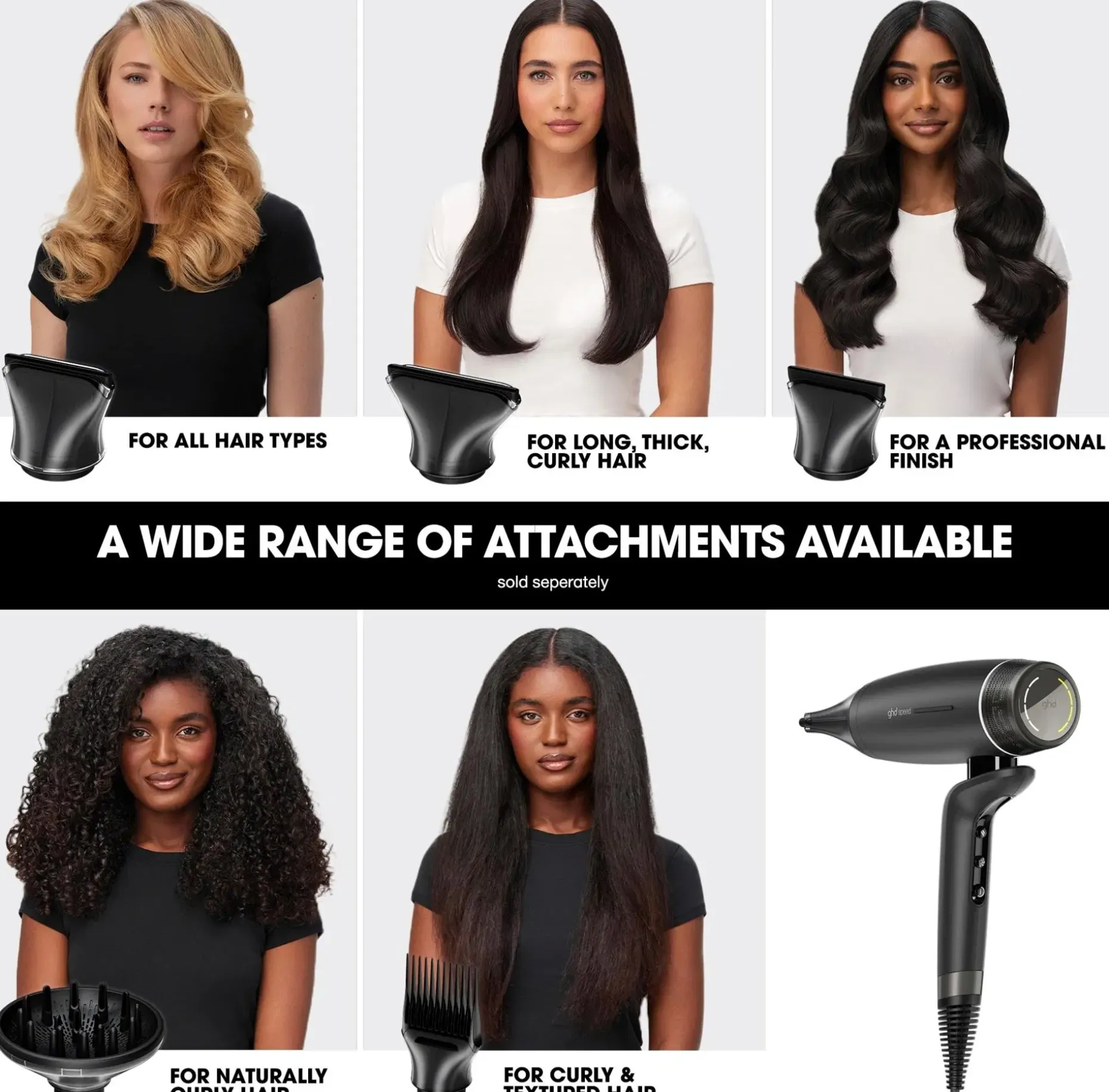 ghd:n ultranopea hiustenkuivaaja, jossa on ghd Halo™ -teknologia ja kaksoisilmavirtaus
