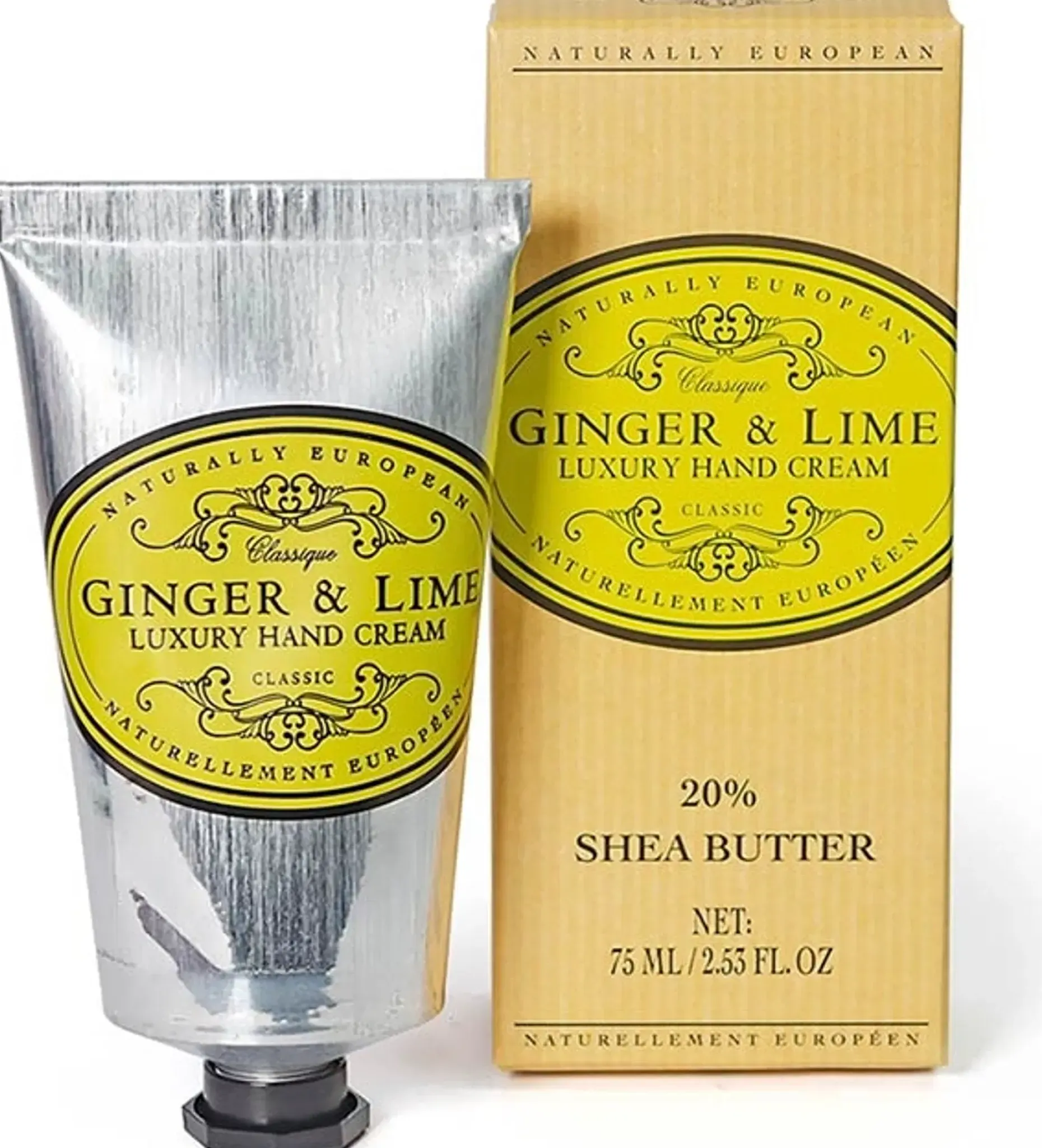 Naturally Europeanin ylellinen ja täyteläinen käsivoide sisältää 20% pehmentävää sheavoita. Käsivoide jättää ihon pitkäaikaisesti kosteutetuksi ja hoitaa samalla myös kynsinauhoja. Tuoreen inkiväärin lämmittävän mausteinen ja limen raikas kirpeä tuoksu. Vegaaninen.