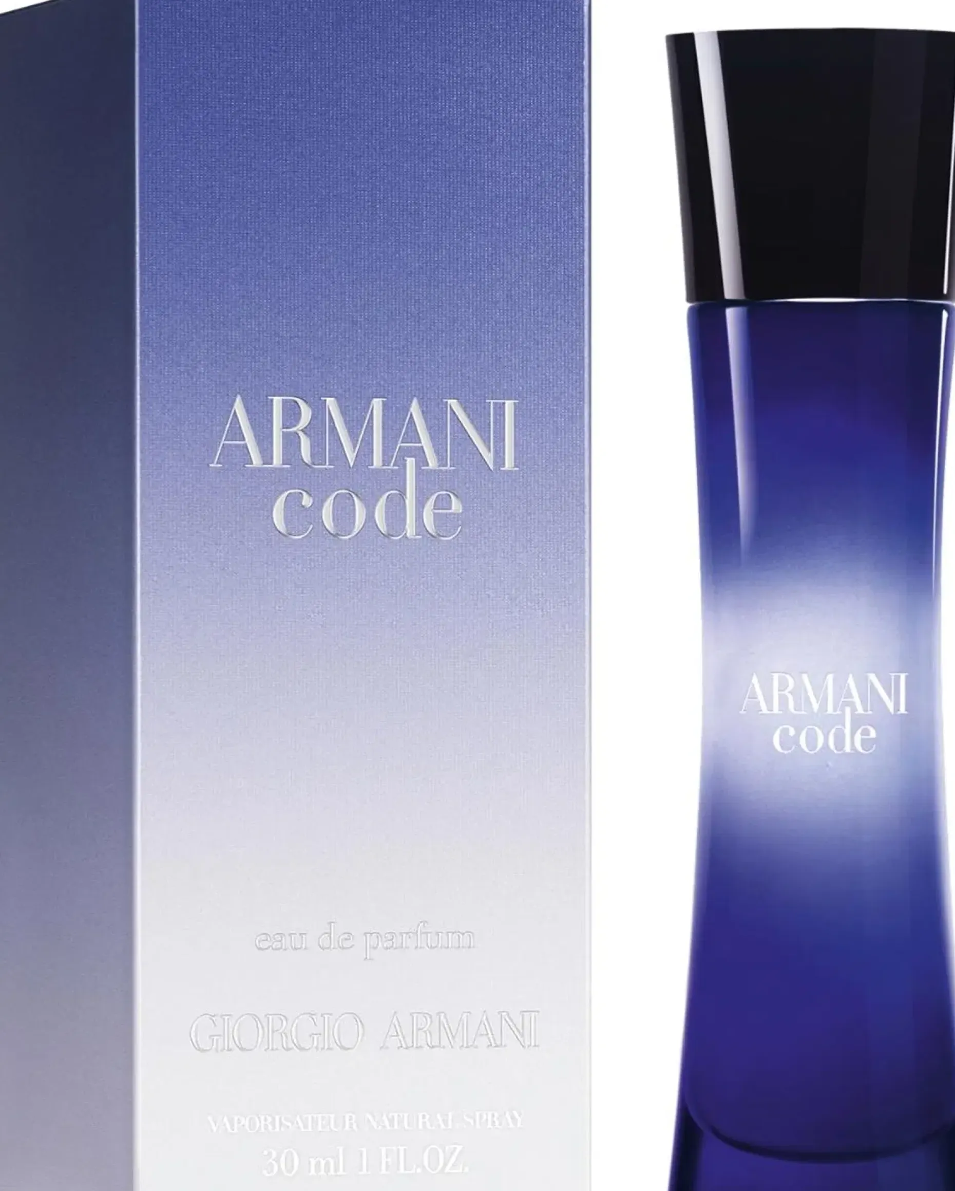 Armani Code Femme Eau de Parfum 30ml. Hienostunut tuoksu vahvalle naiselle, joka haluaa erottautua joukosta. Tuoksussa huumaavaa appelsiininkukkaa, inkivääriä ja jasmiinia. Klassinen Armani -tuoksu, jonka tunnistettava pullo kaartuu safiirinsinisenä kuvastaen kohtalokasta viettelystä.