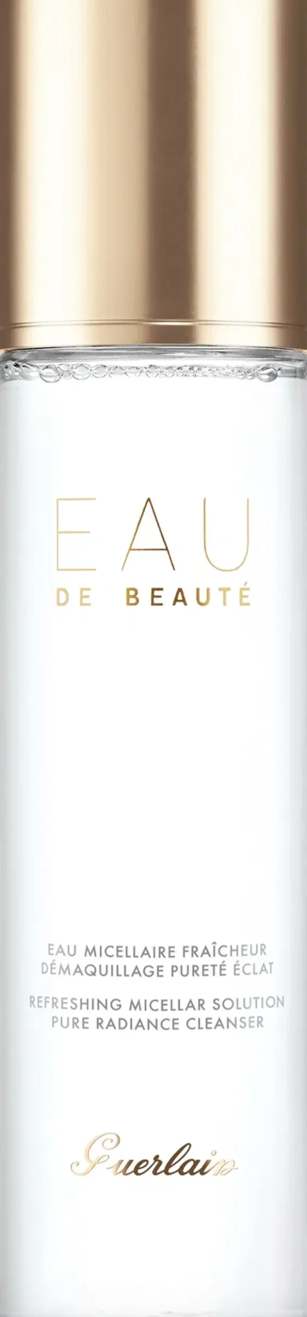 Eau de Beauté -misellivedessä tiivistyvät tehokas meikinpoisto, ihon puhdistus ja kasvovesi. Tuote nopeaan ja tehokkaaseen yhden vaiheen puhdistukseen. Tätä ainutlaatuista, lähes geelimäistä nestettä käytetään vanulapun avulla ja se raikastaa ihoa kuin hoitava aamukaste. Sen misellit – pinta-aktiiviset molekyylit – puhdistavat hellävaraisesti ja poistavat iholta pienimmänkin lian ja viimeisetkin kasvo- ja silmämeikin jäänteet. Puhdas ja uskomattoman raikas iho, joka on kosteutettu vain yhdellä askeleella.Annostele tuotetta vanulapulle ja poista kevyt silmä-, huuli- ja kasvomeikki helposti ja nopeasti.