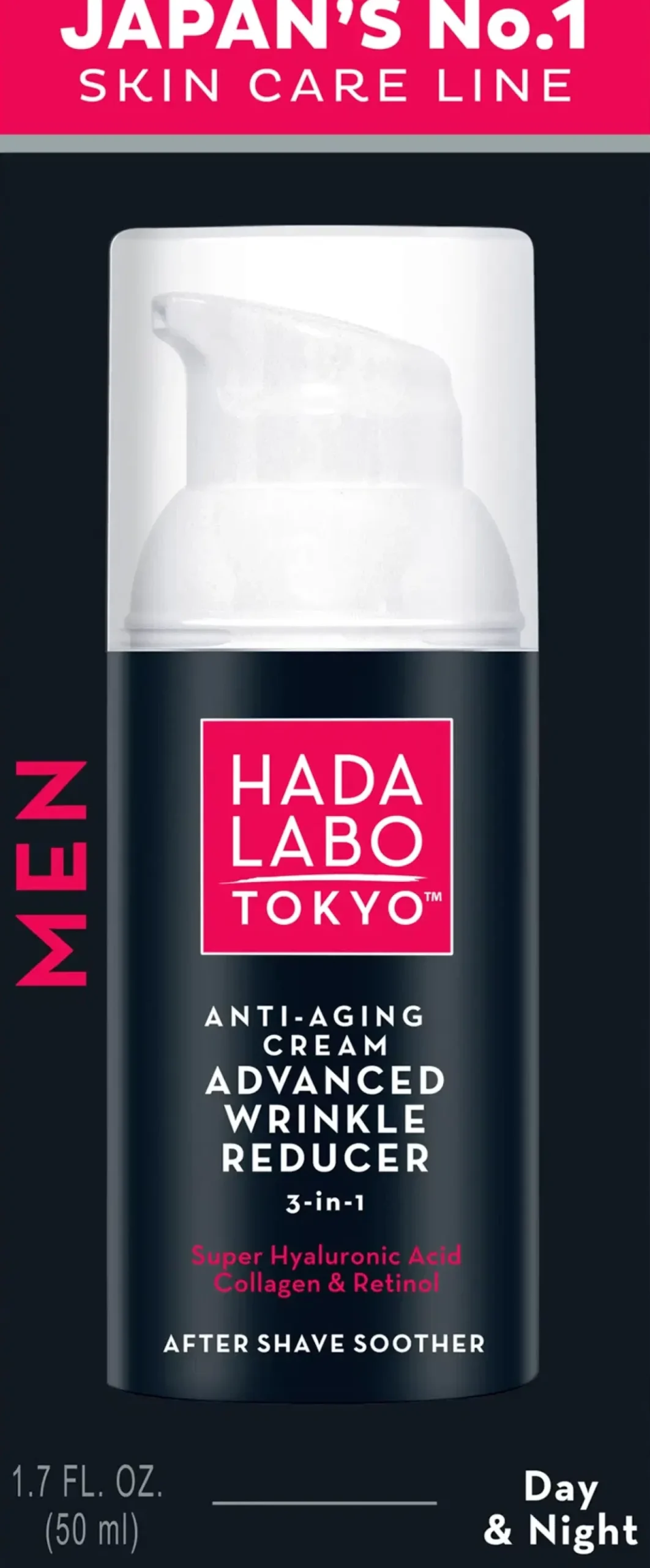 HADA LABO TOKYO MEN Anti-Aging Cream Advanced Wrinkle Reducer on tehokas voide, joka auttaa taistelemaan ikääntymisen merkkejä vastaan kosteuttamalla, silottamalla ja elvyttämällä ihoa.