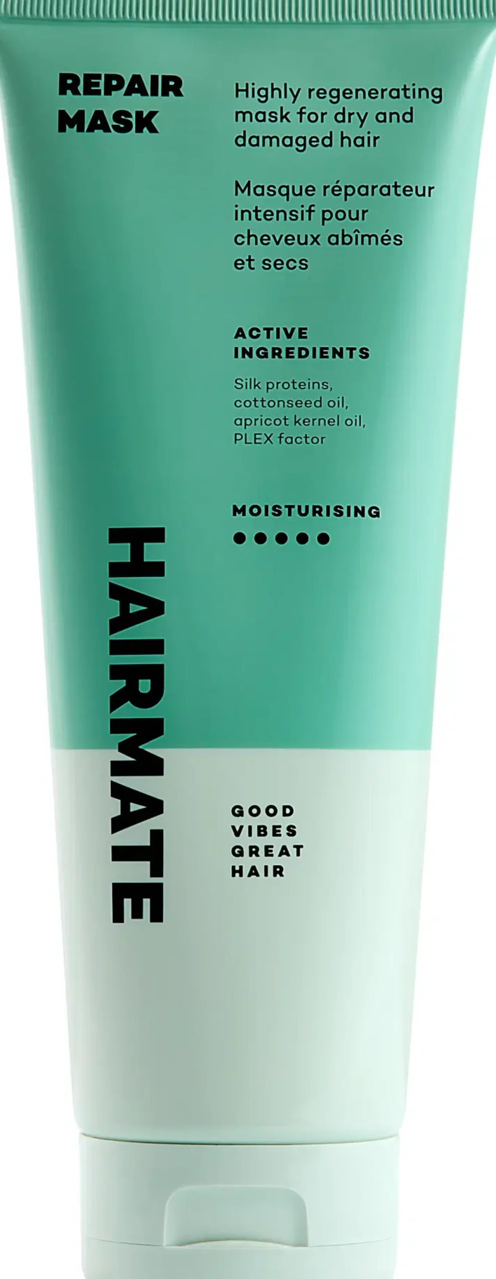 REPAIR MASK on hiusten elvyttävä eliksiiri, joka korjaa tehokkaasti ja intensiivisesti jopa erittäin vaurioituneita hiuksia. Se takaa hiusten nopean ja tehokkaan jälleenrakennuksen sekä hiussuomujen sulkemisen, samalla kun se tukee aktiivisesti hiusten uusiutumisprosessia. Tuloksena on vahvistunut hiusten rakenne ja vähentynyt katkeilu. Koostumus on vapaa sulfaatteista ja parabeeneista. AKTIIVISET AINESOSAT Silkkiproteiinit, puuvillansiemenöljy, aprikoosinsiemenöljy, PLEX-tekijä
