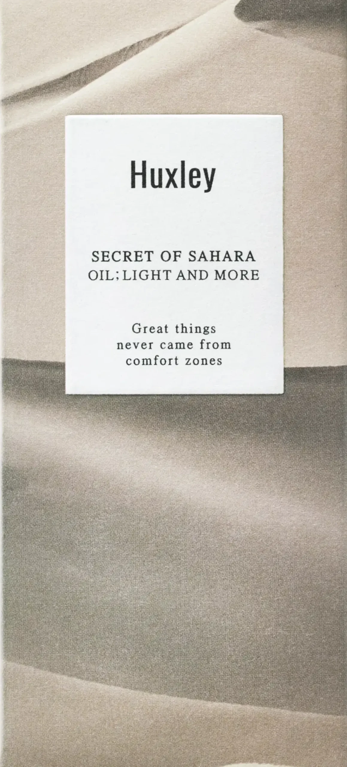 Huxley Oil; Light and More on kevyt kasvoöljy, joka lukitsee kosteutta iholle tehokkaasti tekemättä ihosta rasvaisen tuntuista. Sisältää antioksidanttista viikunakaktuksen siemenöljyä, auringonkukan siemenöljyä, jojobaöljyä sekä skvalaania. Nopeasti imeytyvä koostumus myös suojaa ihoa.
