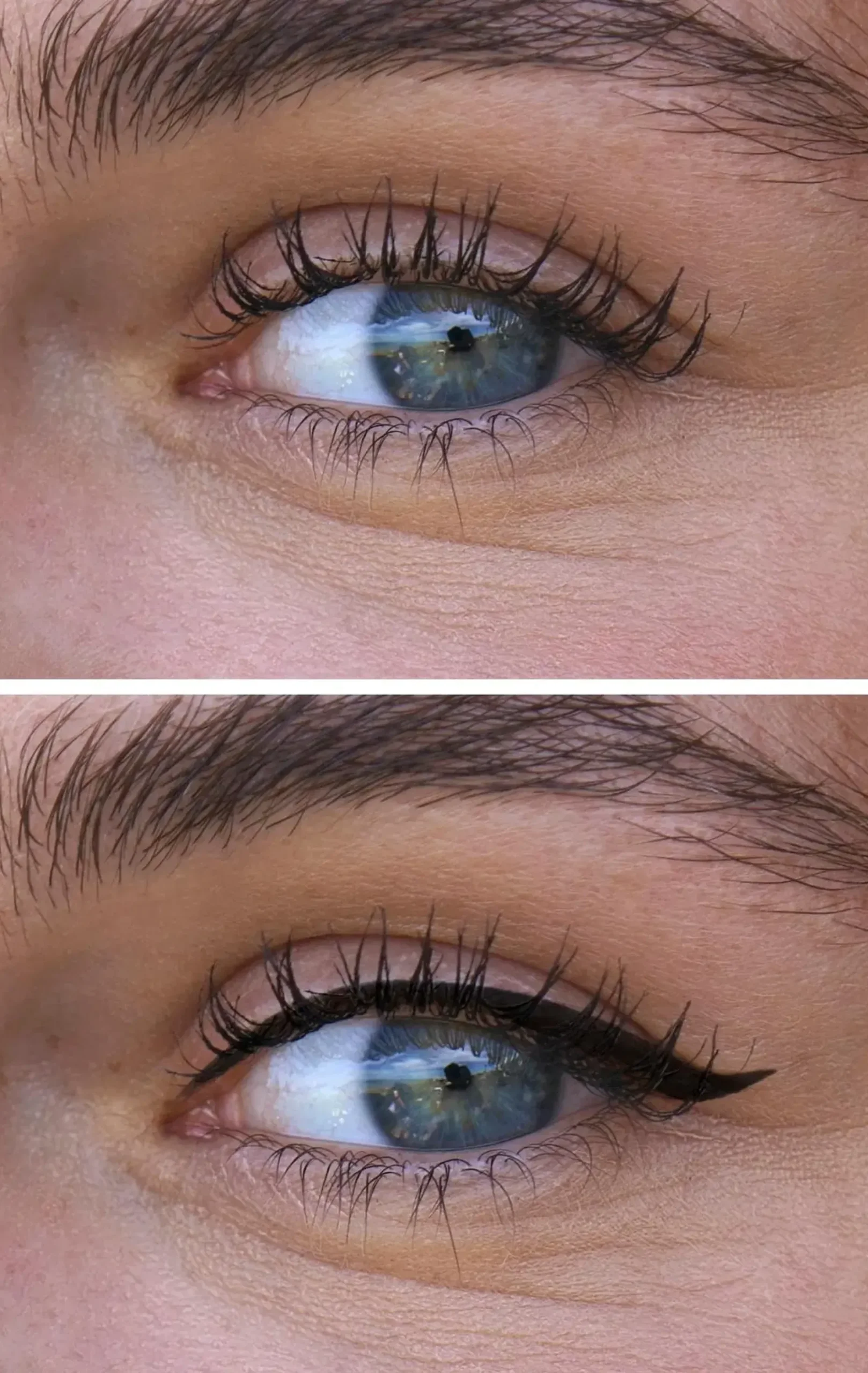 Levitä ripsirajaasi silmän sisäkulmasta alkaen ja piirrä ulkokulmaan siipi. Tarvittaessa kerrosta vahvistaaksesi värin intensiteettiä ja piirrä paksumpi viiva.