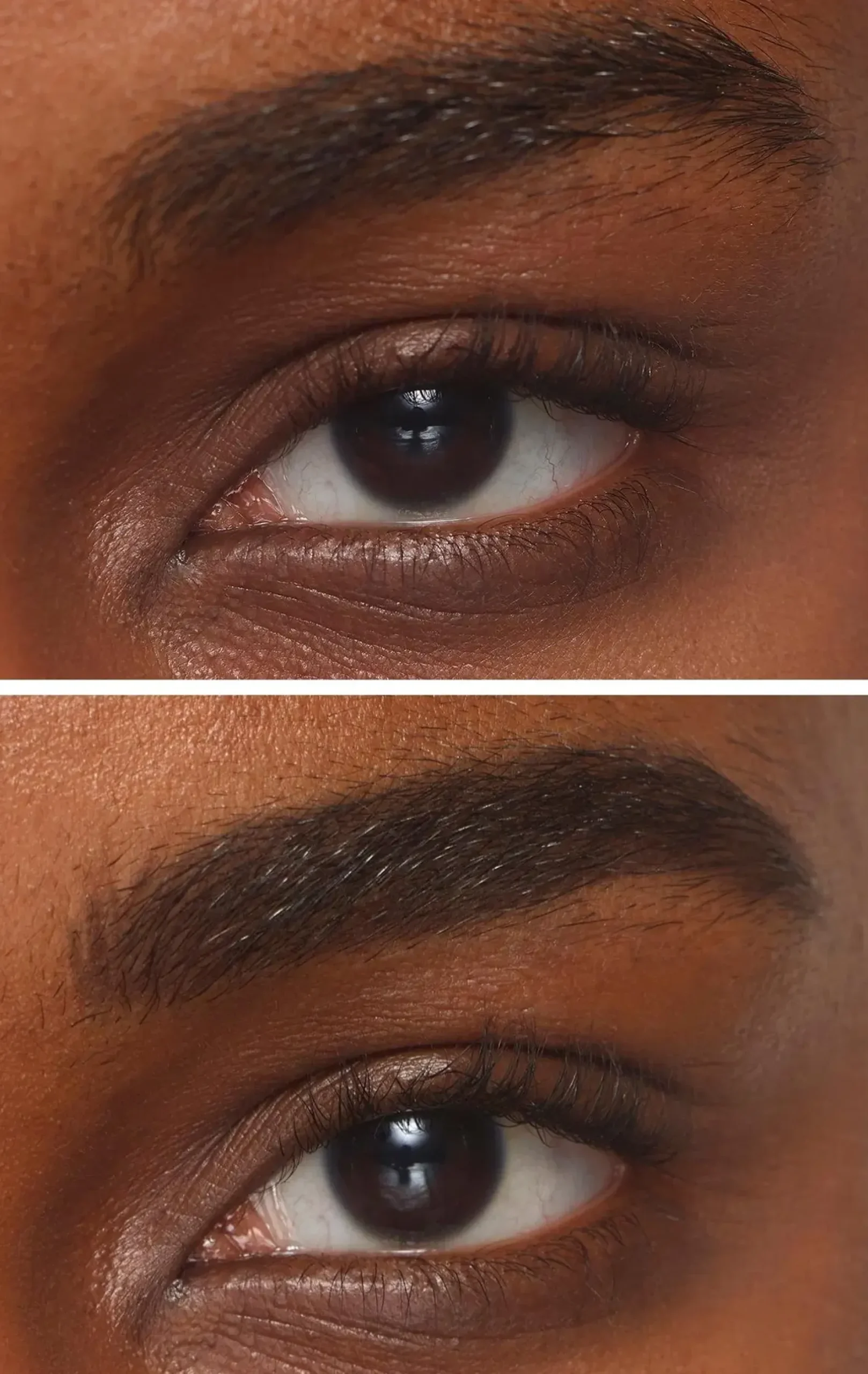 Börja med att borsta dina ögonbryn med hjälp av borsten. Måla en kontur längs ögonbrynets form. Fyll sedan i med lätta fjäderlika drag, forma, skapa definition och jämna ut brynens kontur. När du är nöjd med formen kan du borsta genom ögonbrynen ytterligare en gång för att mjuka upp skarpa linjer, om det behövs.