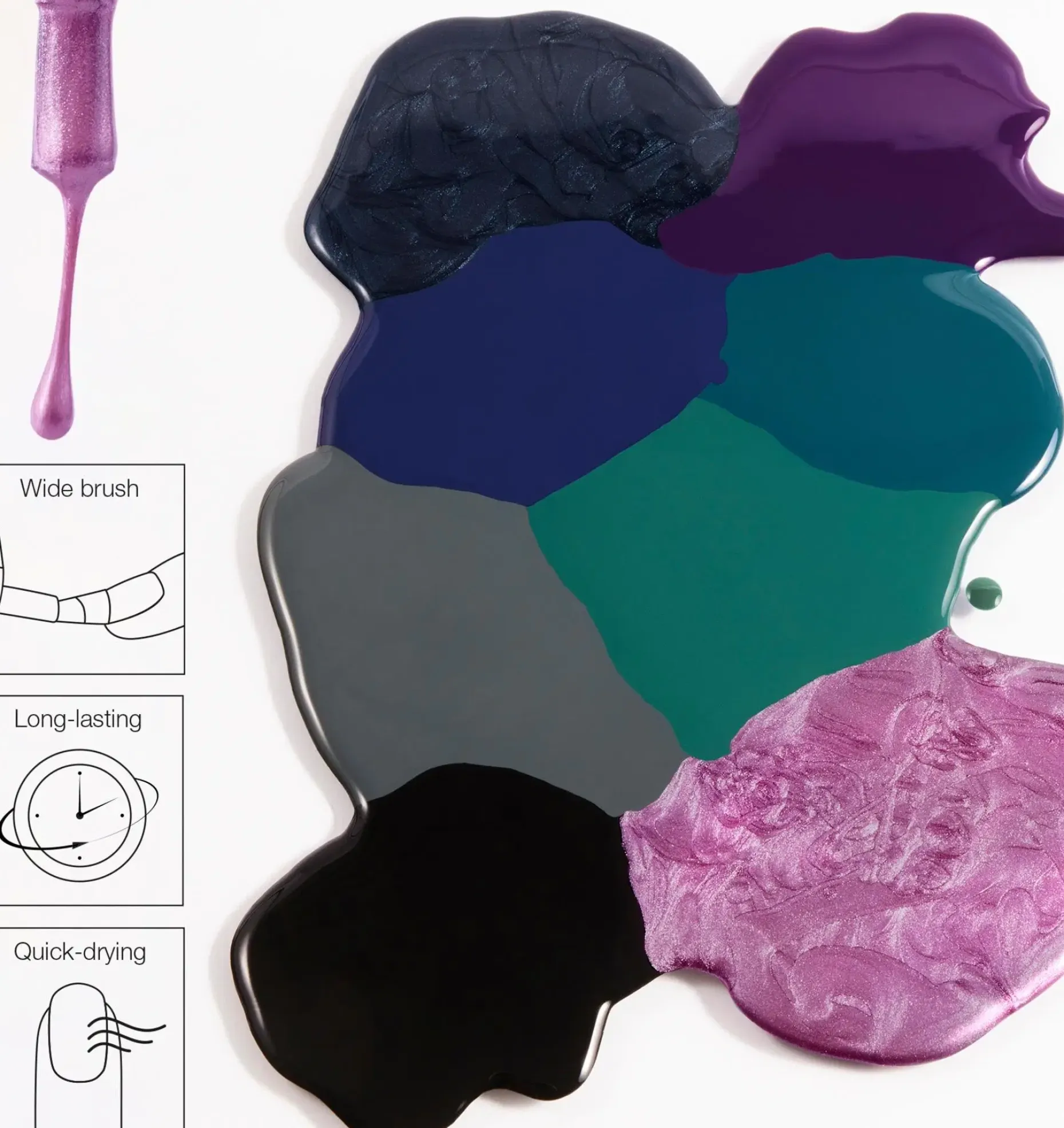 Ikoninen ja rakastettu Wonder Nail -kynsilakkamme on nyt saatavilla kattavassa värivalikoimassa. Valitse sävy, joka kuvastaa mielialaasi parhaiten ja täydentää tyyliäsi. Valikoima tarjoaa kaikkea viileistä, tyylikkäistä neutraaleista ihanan pehmeisiin pastelleihin, hohdokkaan kirkkaisiin ja intensiivisen tummiin sävyihin. Erityisen leveä sivellin tarjoaa innovatiivisellä muotoilullaan täyden, tasaisen peittävyyden ilman juovia. Koostumus on nopeasti kuivuva, halkeilematon ja suunniteltu säilyttämään värinsä koko käytön ajan. Suosittu Wonder Nail Polish yli 20 sävyn valikoimana. Tutki, löydä ja luo tyylisi!