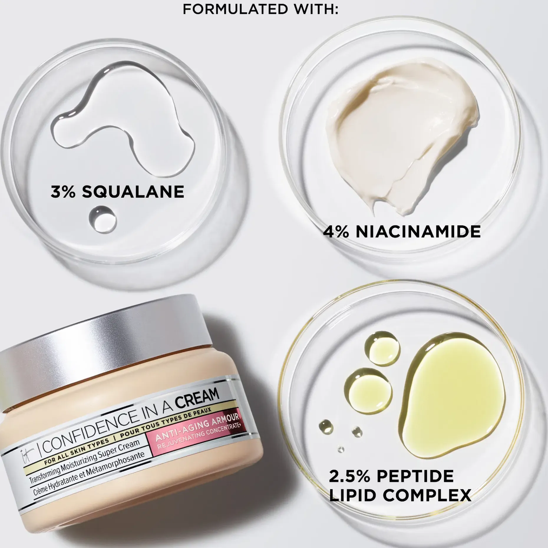 Tutustu IT Cosmeticsin Confidence in a Cream Supercharged-kosteusvoiteeseen– se on suunniteltu tekemään ihostasi kiinteämmän näköisen ja se vähentää 10 ikääntymisen yleisintä merkkiä vain kahdessa viikossa!