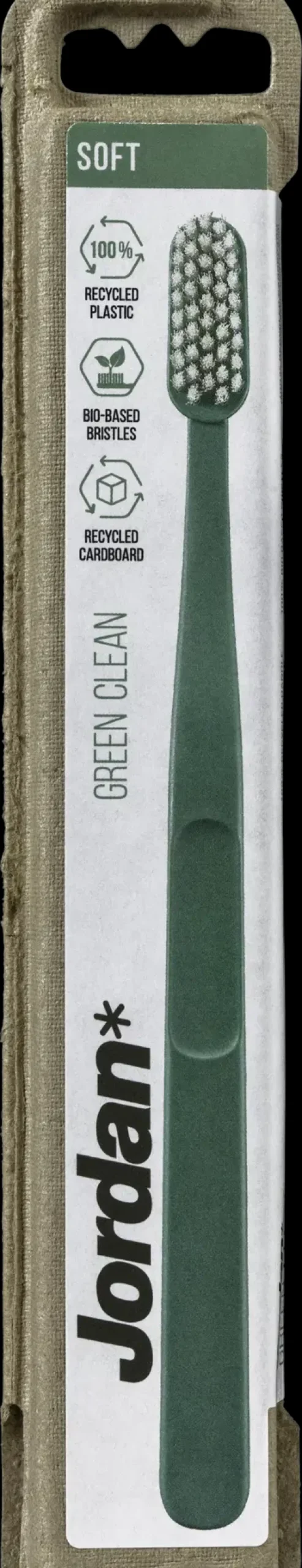 – Jordan Green Clean on vihrein hammasharjamme! Harjat on pakattu näyttävään pahvipakkaukseen, kahva on valmistettu 100% kierrätetystä muovista ja harjakset ovat 100% biopohjaiset. Hammasharjat on suunnitellut palkittu norjalainen suunnittelija Andreas Engesvik. Hammasharja on muotoiltu niin, että siitä saa mukavan peukalo-otteen hyvään ohjattavuuteen suussa. 4 eri väriä.