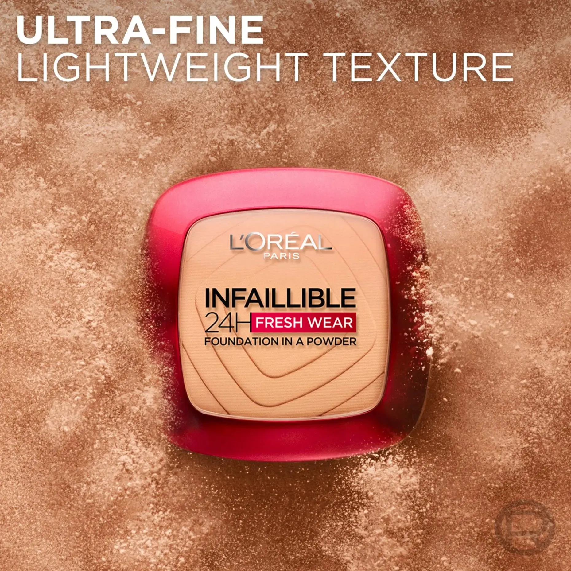 Koe L’Oréal Paris Infaillible 24H Fresh Wear Foundation In A Powder -meikkipuuteri. Meikkipuuteri peittää kuten nestemäinen meikkivoide samalla, kun se antaa iholle mattapinnan paakkuuntumatta. Enemmän kuin pelkkä puuteri! Koostumus sisältää erittäin hienojakoisia pigmenttejä, jotka kiinnittyvät ihoon ja pysyvät koko päivän. Helppo häivyttää ja antaa iholle luonnollisen näköisen, saumattoman ja sametinpehmeän mattapinnan. Saatavana 16 sävyssä, jotka sopivat erilaisille ihon sävyille. Ei tahraa. Hienkestävä. Vedenkestävä. Lämmön ja kosteuden kestävä. Pidennä puuterisi kestoa!