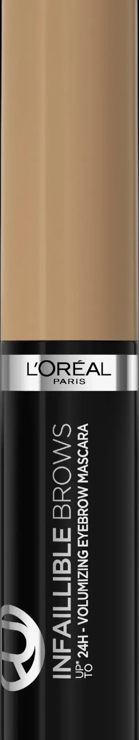 L’Oréal Paris Infaillible Brows 24H Volumizing Eyebrow -kulmamaskara on värillinen kulmageeli, joka antaa kulmillesi näkyvästi enemmän tuuheutta. Useassa rivissä olevat limittäiset harjakset vangitsevat ja muotoilevat jokaisen kulmakarvan ja levittävät koostumuksen tasaisesti. Koostumus sisältää elastisia kuituja, jotka antavat kulmillesi ulottuvuutta ja täyteläisemmät kulmat. Kestää jopa 24 tuntia*, vedenkestävä, ei tahraa eikä leviä.