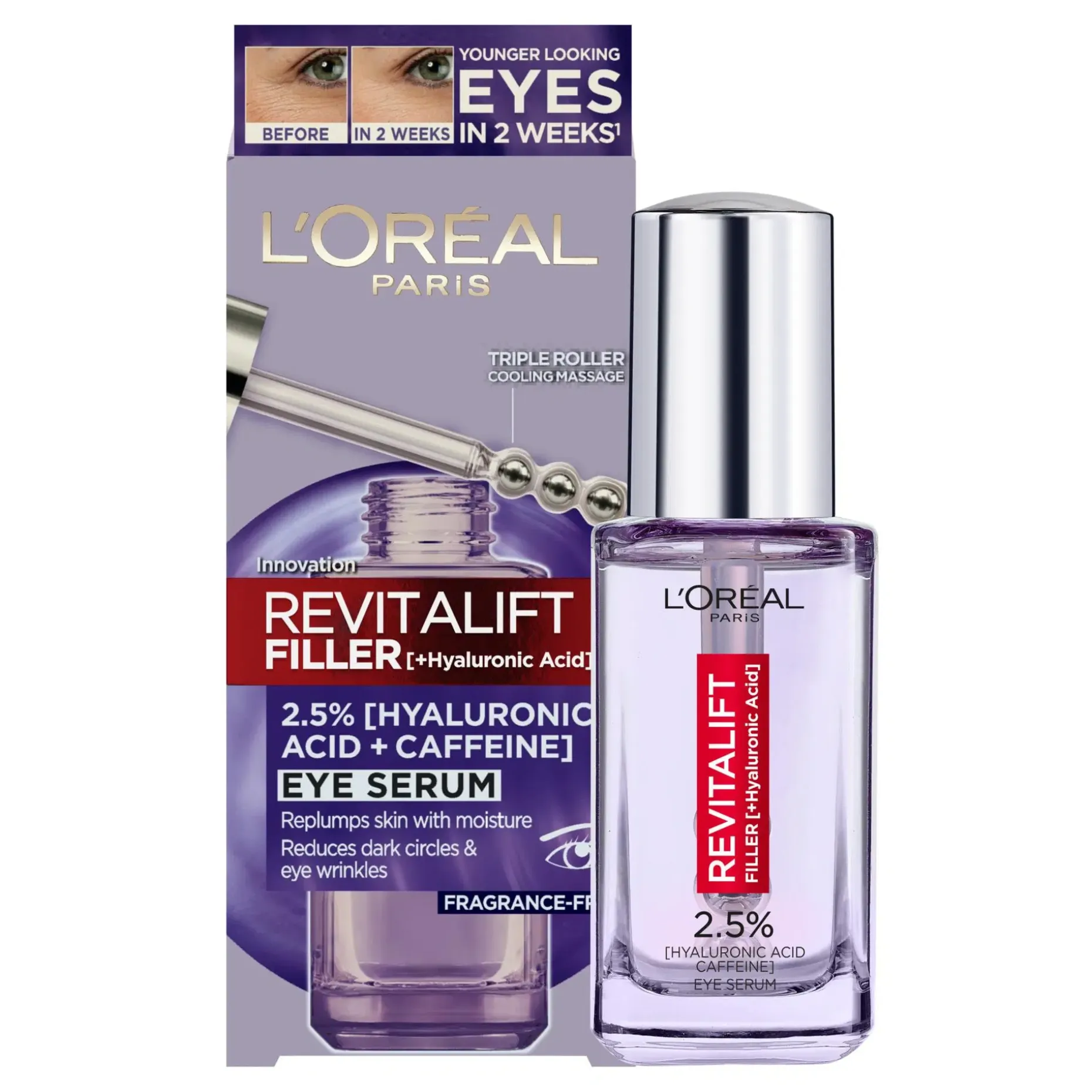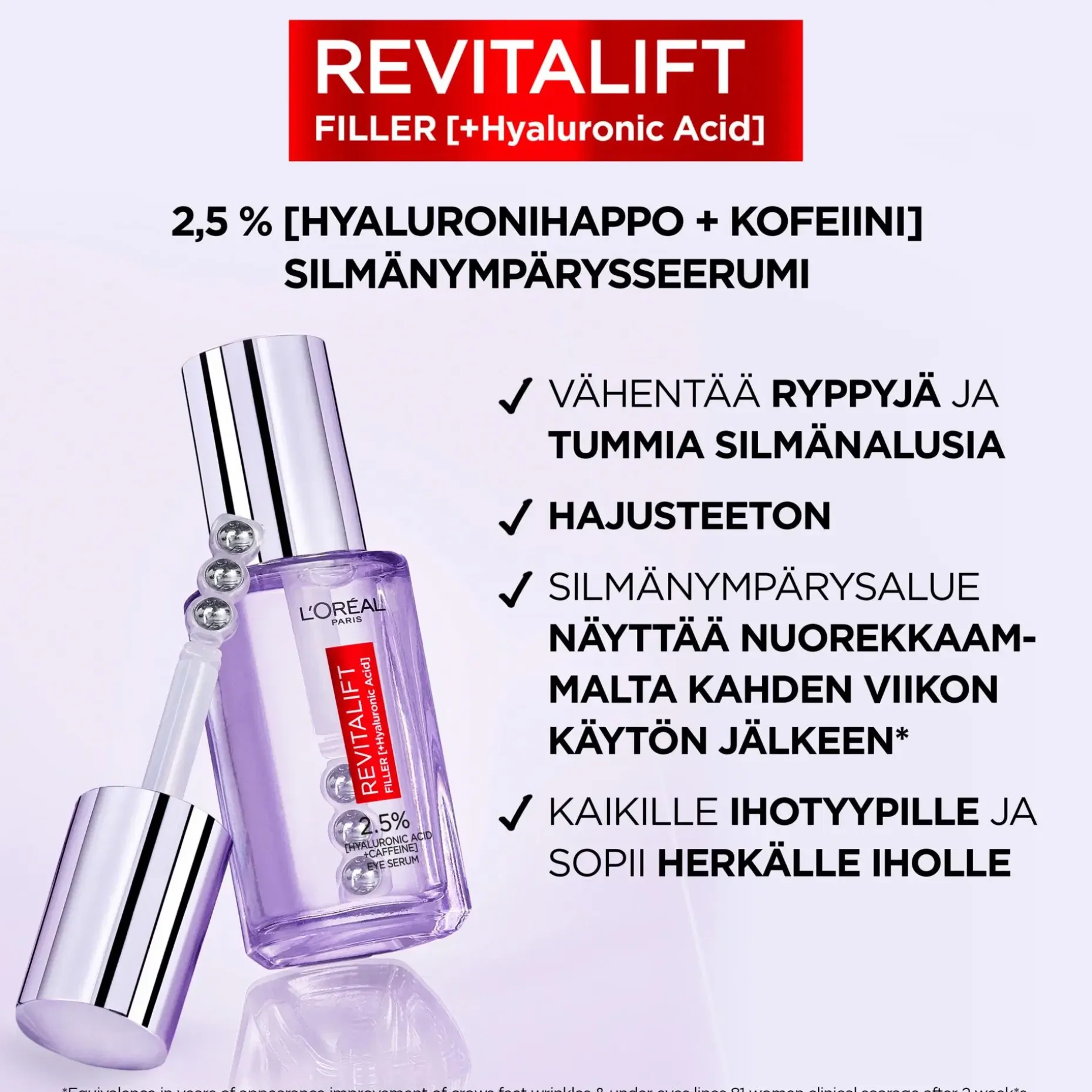 ENSIMMÄINEN ERITYISESTI SILMÄNYMPÄRYSALUEELLE KEHITETTY SEERUMIMME. Koostumus sisältää korkean pitoisuuden hyaluronihappoa ja kofeiinia