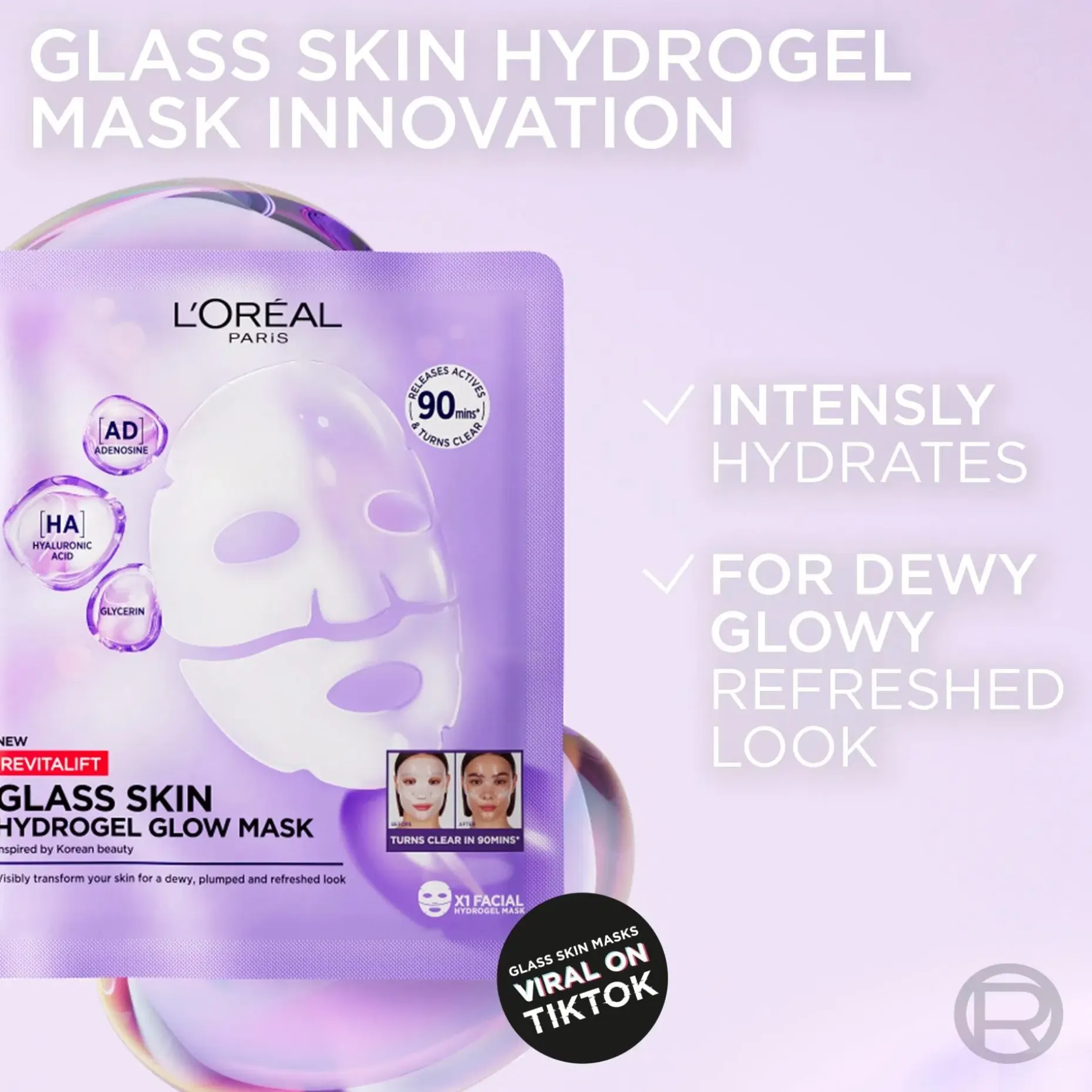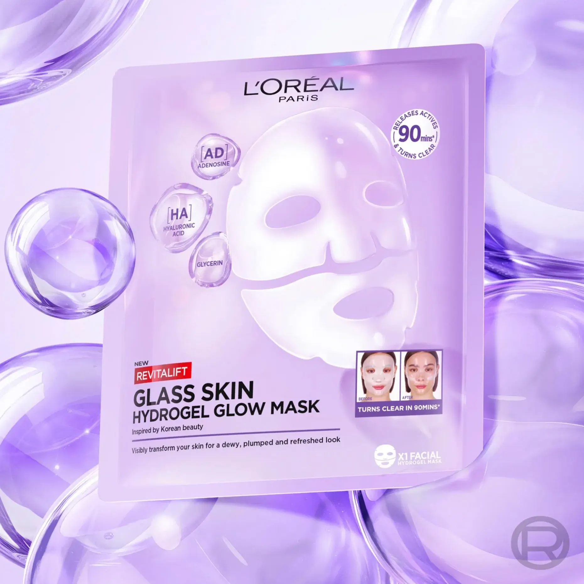 L’Oréal Paris Revitalift Filler Glass Skin Hydrogel Sheet Mask on heleyttävä lasi-ihon antava hydrogeelinaamio kaikille ihotyypeille, myös herkälle iholle. Korealaisesta ihonhoidosta inspiraationsa saanut kangasnaamio muuttuu läpinäkyväksi iholla 90 minuutin kuluttua. Antaa kasteenraikkaan, täyteläisen ja virkistyneen näköisen ihon. Koostumus sisältää Centella asiatica -uutetta, rauhoittavaa pantenolia ja vaikuttavia ihonhoitoainesosia hyaluronihappoa, adenosiinia ja glyseriiniä. • Hydrogeelinaamio • Tekee ihosta näkyvästi paremman vain 90 minuutissa • Saanut inspiraationa korealaisesta ihonhoidosta • Koostumus vaikuttavia ihonhoitoainesosia • Sopii kaikille ihotyypeille, myös herkälle iholle • Kertakäyttöinen tuote: Voidaan käyttää enintään 3 kertaa viikossa.