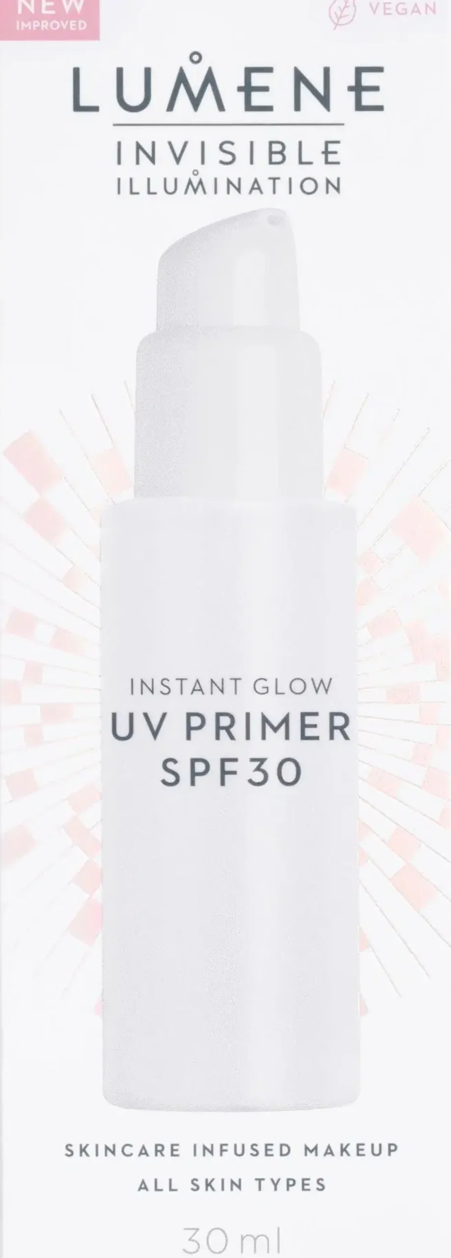 Heleyttävä meikinpohjustaja SK 30 luo kestävän ja heleän meikkipohjan sekä suojaa ihoa UVA- ja UVB-säteiden haitallisilta vaikutuksilta. Kevyt, nestemäinen koostumus sisältää kirkastavaa pohjoista horsmaa, kosteuttavaa pohjoista levää ja E-vitamiinia, jotka kosteuttavat ja kirkastavat ihoa samalla kun helmiäispigmentit tuovat kasvoille kauniin hehkun. Sopii käytettäväksi erinomaisesti Invisible Illumination Sävyseerumin, Sävyvoiteen tai minkä tahansa muun Lumene-meikkivoiteen kanssa. Vegaaninen koostumus.