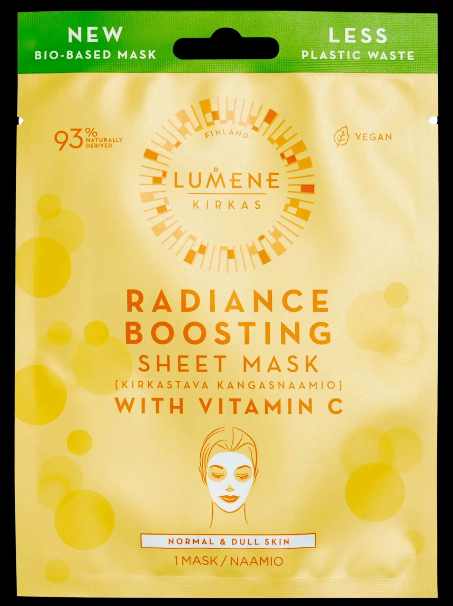 Tämä C-vitamiinia sisältävä, kangasnaamioon imeytynyt seerumikoostumus auttaa tekemään ihosta hehkuvan ja tasaisen näköisen. Selluloosa pohjainen, biohajoava kangasnaamio auttaa aktiiviaineita vaikuttamaan iholla ja estää kosteuden haihtumista, tehden ihosta kirkkaamman näköisen. Sopii kaikille ihotyypeille.