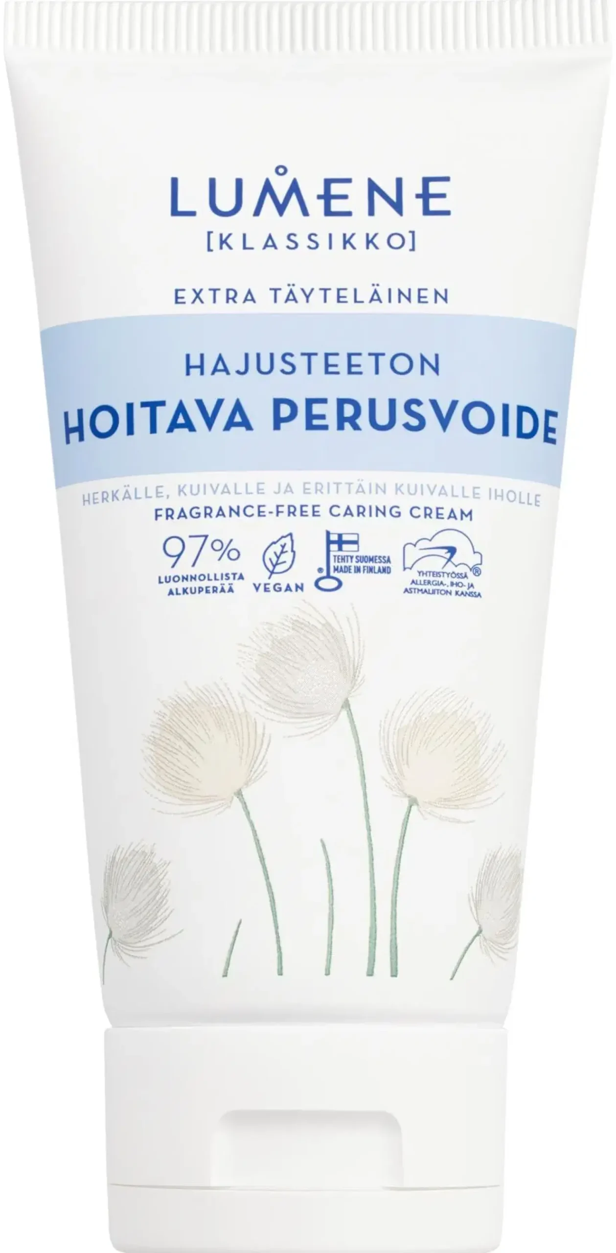Täyteläinen hajusteeton perusvoide, joka sopii herkälle, kuivalle ja erittäin kuivalle iholle, kosteuttaa ja ravitsee ihoa tehokkaasti sekä suojaa sitä kuivumiselta. Ainutlaatuinen yhdistelmä sisältää pohjoista tupasvillaa sekä puhdasta pohjoista lähdevettä jättäen ihon pehmeän ja hoidetun tuntuiseksi. Yhteistyössä Allergia-, Iho-, ja Astmaliiton kanssa.