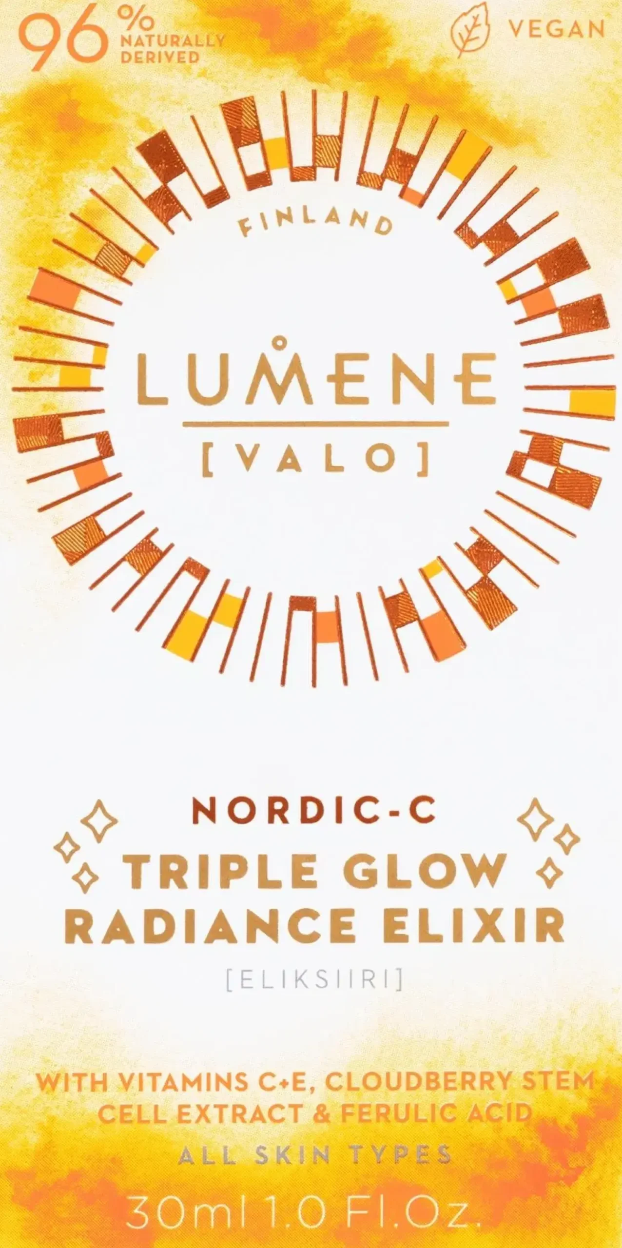 Nordic-C [Valo] Triple Glow Kirkastavalla eliksiirillä on kliinisesti testattu heleyttävä ja ihon elastisuutta parantava vaikutus*