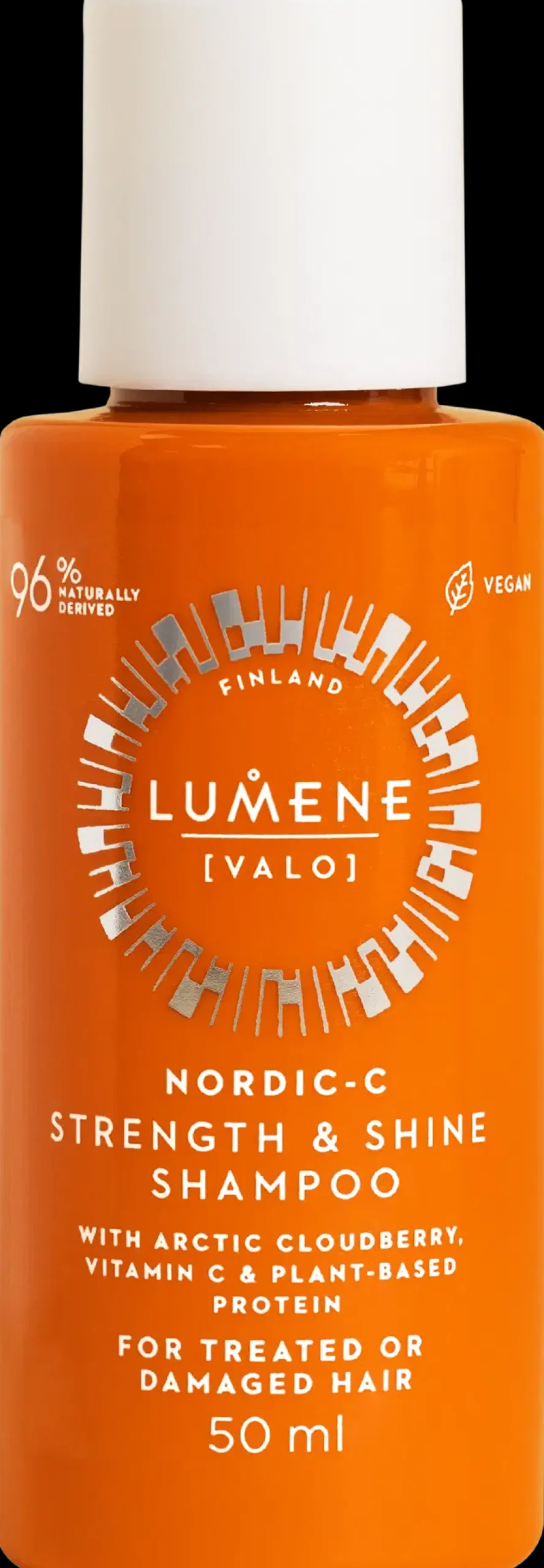 LUMENE Nordic-C [Valo] Vahvistava & kiiltoa antava shampoo auttaa hoitamaan hiuksia ja hiuspohjaa pohjoisen lakan, C-vitamiinin ja kasvipohjaisen proteiinin avulla tehden hiuksista hyvinvoivan ja kiiltävän näköiset. Kehitetty vahvistamaan, korjaamaan ja ehkäisemään hiusten katkeilua.