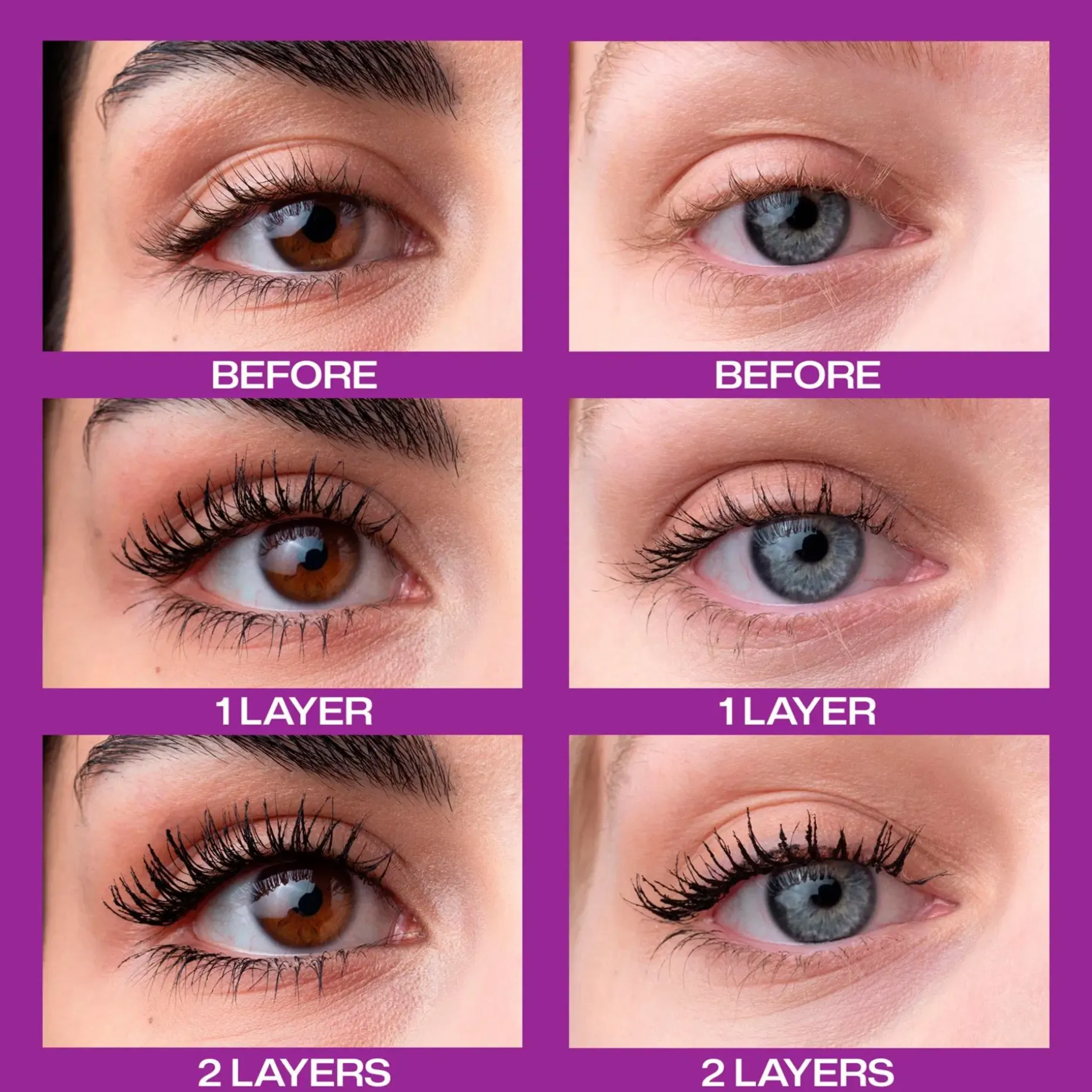 Levitä mascaraa ripsien tyvestä kohti ripsien kärkiä kevyellä siksak-liikkeellä. Levitä useita kerroksia halutun volyymin saavuttamiseksi.