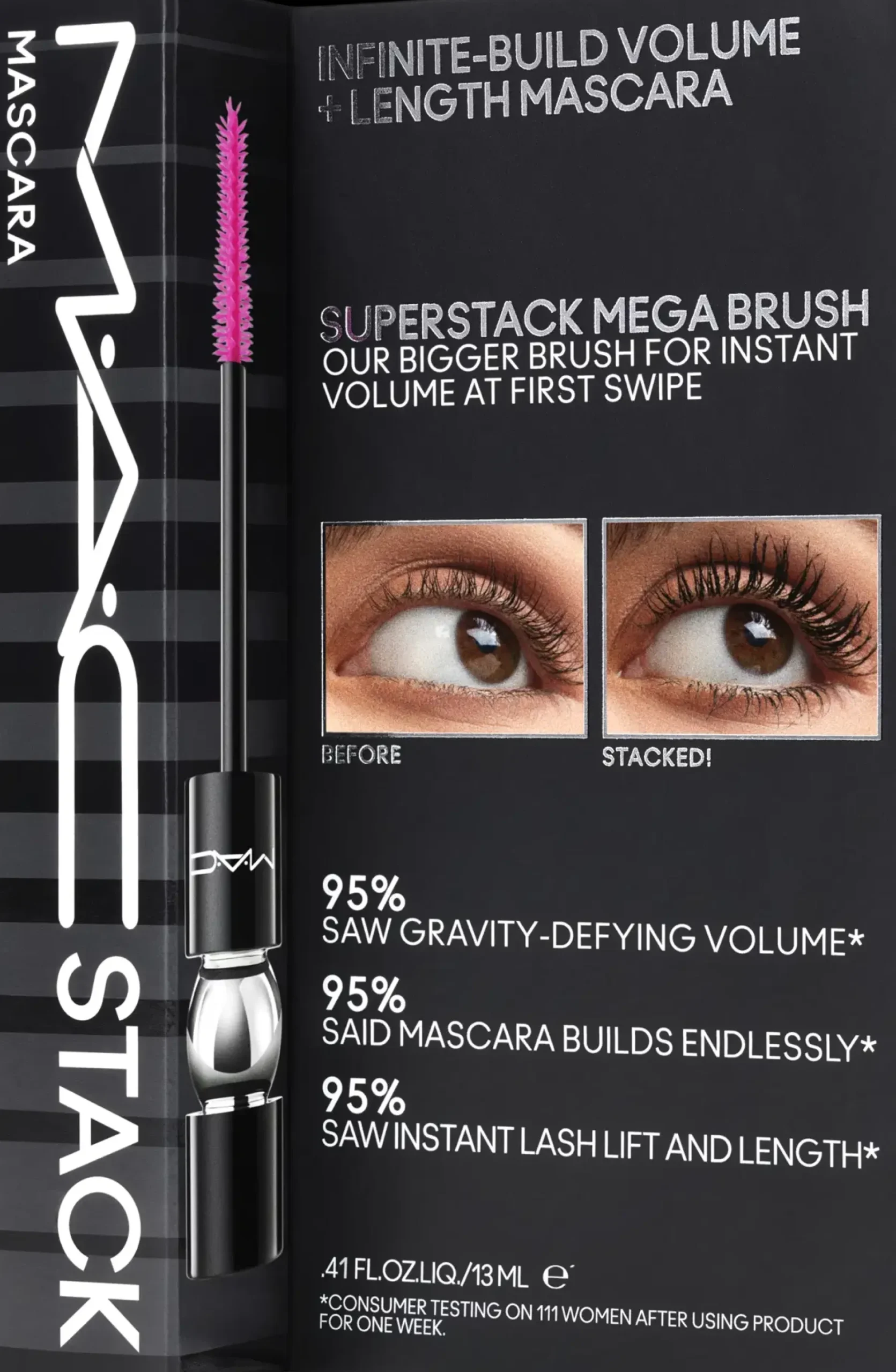MAC Stack Mascara on ripsiväri, joka tarjoaa loputtoman määrän tilavuutta ja pituutta. Tätä ainutlaatuista ripsiväriä voidaan rakentaa ilman paakkuuntumista ja se antaa sinulle räätälöidyn volyymin, jotta saat kauniit, kaarevat ripset koko päiväksi. Ripsiväri antaa sinulle mahdollisuuden luoda luonnollisia tai intensiivisempiä lookeja. Mukana tuleva Superstack Mega Brush – kumiharja antaa välittömästi tilavuutta ensimmäisestä vedosta alkaen ja sopii täydellisesti sekä ylä- että alaripsille. Riippumatta siitä, minkä ilmeen haluat, voit korostaa yksilöllisyyttäsi tällä välttämättömällä ripsivärillä, joka laajentaa sekä katseesi että ripsesi.