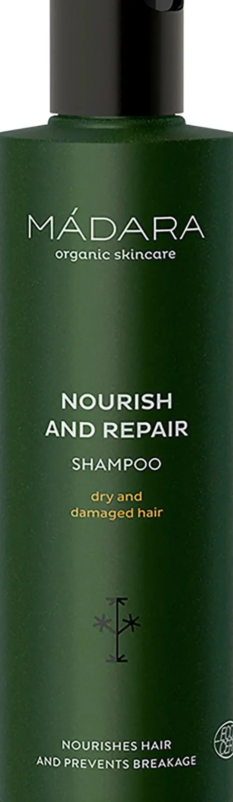 Hiero kosteisiin hiuksiin. Vaahdota ja huuhtele. Parhaan tuloksen saavuttamiseksi käytä yhdessä MÁDARA Nourish and Repair -hoitoaineen kanssa.