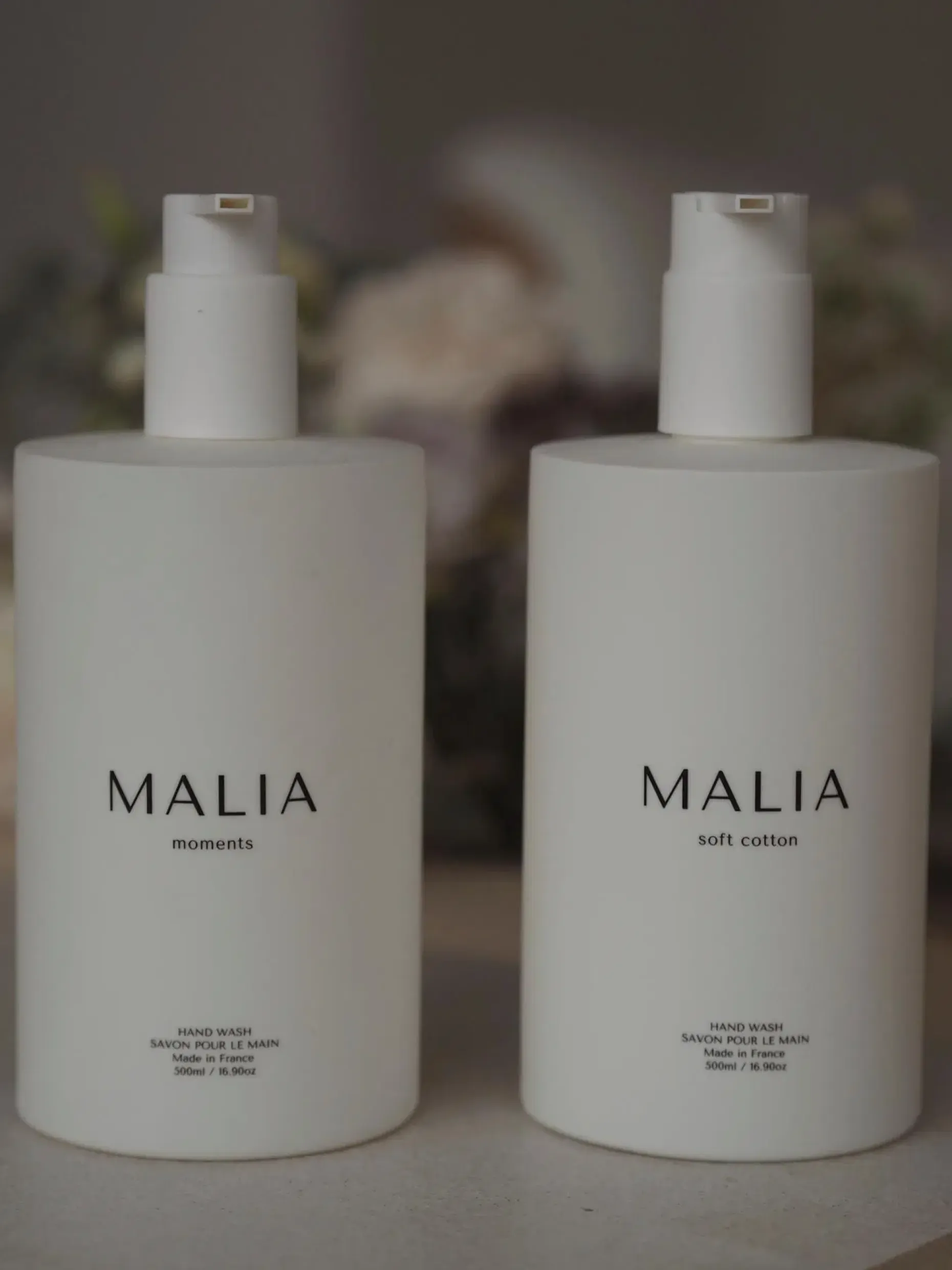 Luonnollinen, vegaaninen MALIA käsisaippua kauniissa uudelleenkäytettävässä pullossa. Pehmeä viipyvä tuoksu ja sopivan nestemäinen koostumus takaavat lempeän pesukokemuksen.