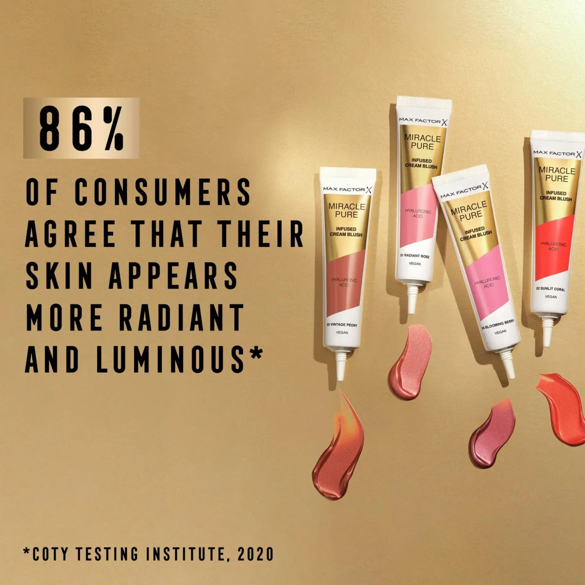 Miracle Pure Cream Blush on runsaspigmenttinen, heleyttävä ja kosteuttava voidemainen poskipuna. Kevyt ja helposti levittyvä hoitava koostumus sisältää mm. glyseriiniä, hyaluronihappoa ja squalanea. Max Factorin Miracle Pure Cream voidemaisella poskipunalla saat kerrostettua haluamasi upean kuultavan ja pitkäkestoisen lopputuloksen. Vegaani poskipuna on saatavilla kolmessa kauniissa sävyssä.