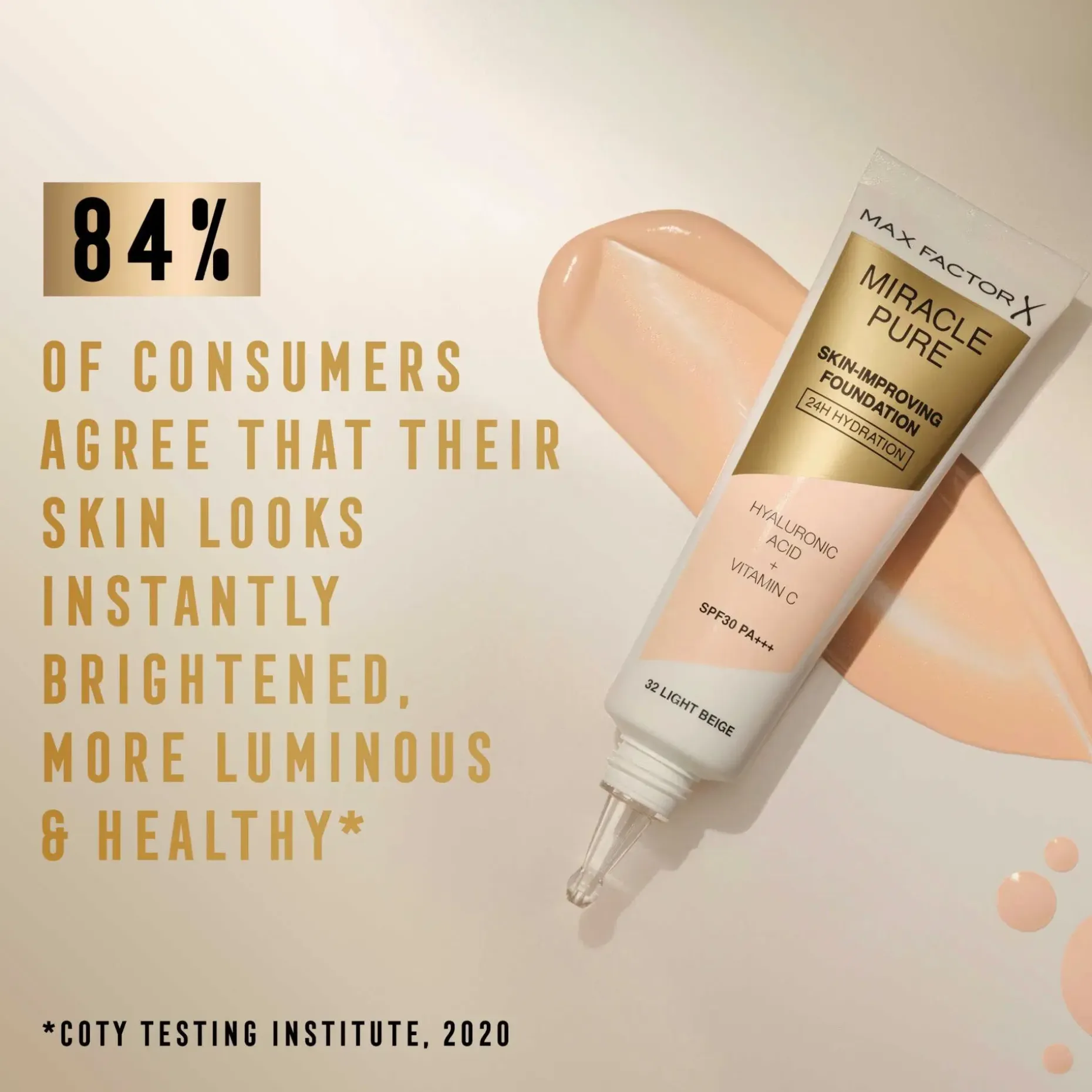 ”Miracle Pure Foundation on ensimmäinen meikkivoide joka sisältää 89% ihoa hoitavia ainesosia; ainutlaatuisen kollageenia aktivoivan yhdisteen, ihoa kirkastavaa C-vitamiinia ja kosteuttavaa hyaluronihappoa. Meikkivoide hoitaa ihoasi käytön aikana ja kosteuttaa ihoasi jopa 24 tunnin ajan saaden aikaan raikkaan, hehkuvan ihon.