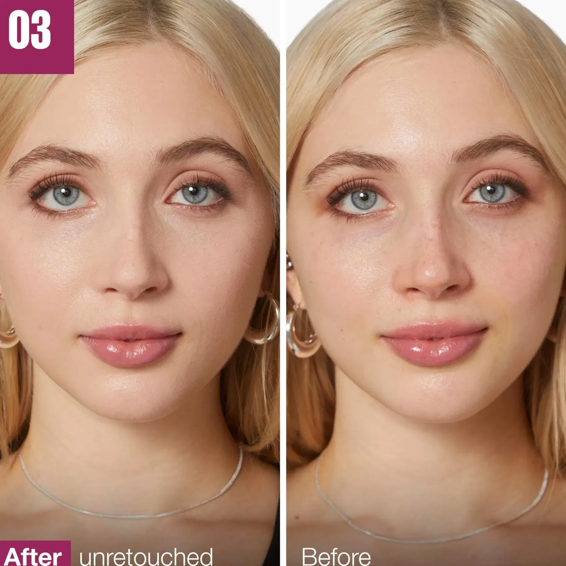 – Peitevoide, joka häivyttää tummia silmänaluksia ja juonteita välittömästi. Heleä ja raikas ilme.