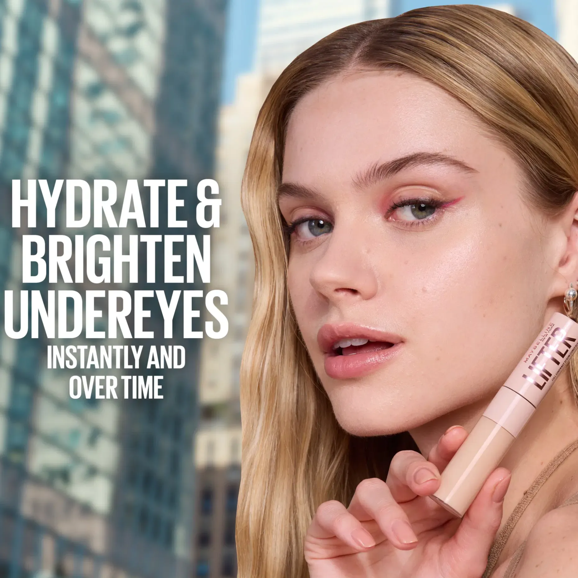 Maybelline New York Lifter -seerumipeitevoide on raikkaan, virheettömän silmänalusihon salaisuus. Täysin peittävän seerumipeitevoiteen koostumus sisältää 78 % ihoa hoitavia ainesosia ja se antaa välitöntä ja pitkäkestoista kosteutusta ja kirkastaa samalla näkyvästi silmänalusihoa. Koostumus sisältää 2 % tehokasta peptidiyhdistelmää ja kofeiinia ja se tekee samealta näyttävästä ihosta heleän ja antaa pitkäkestoisen kohotetun ilmeen. Koostumus tuntuu miellyttävältä iholla koko päivän, häivyttää epätasaisuuksia ja vähentää tummien silmänalusten näkyvyyttä.