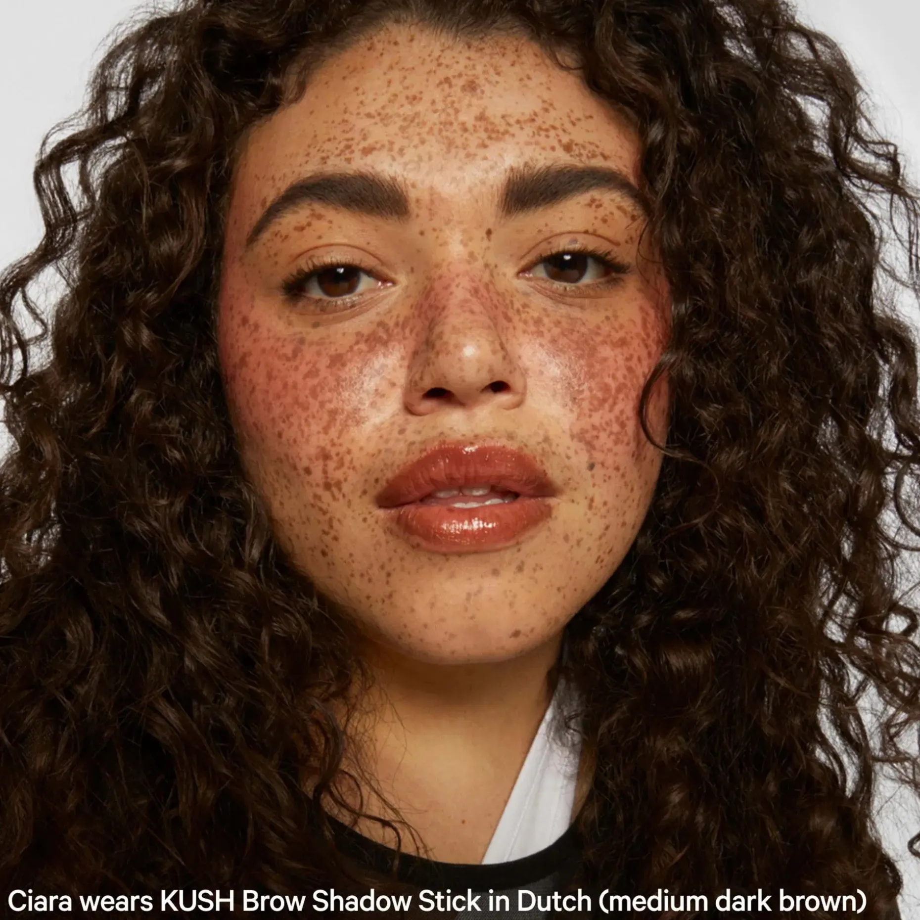 Svep lätt med den vinklade spetsen på brynen och bygg upp till önskad look (lite räcker långt). Använd den inbyggda spoolien för att sprida ut färgen och kamma brynen på plats. För extra stadga, använd med KUSH Fiber Brow Gel eller KUSH Brow Lamination Gel.