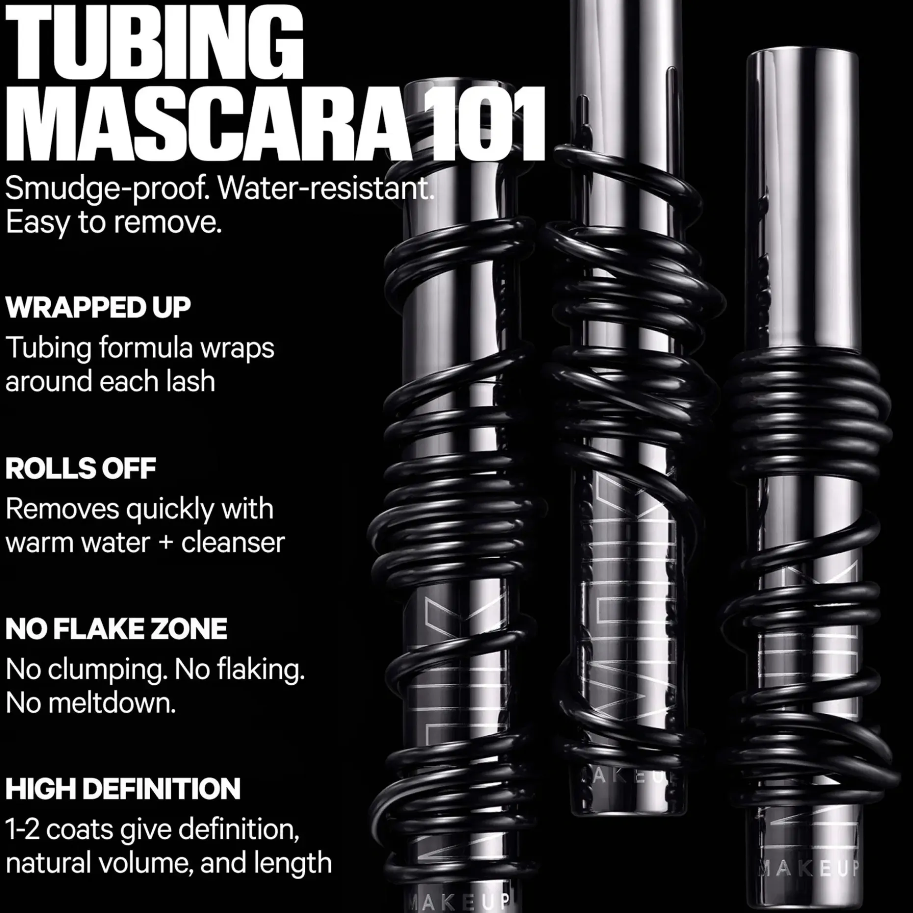 Tubing-ripsiväri, joka erottelee jokaisen ripsen antaen volyymia ja pituutta. Ei tahraa tai varise, ja pysyy jopa 24 tunnin ajan. Tämä innovatiivinen, alkoholivapaa koostumus ympäröi ripset hikoilunkestävillä ”putkilla”. Hoitava hamppuöljy ja kasvivahat pitävät ripset pehmeinä, ilman jäykkyyttä. High-Def-harjassa on porrastetut harjakset, jotka kampaavat ripset antaen eroteltua volyymia. Helposti poistettavissa meikinpuhdistusaineella ja lämpimällä vedellä.