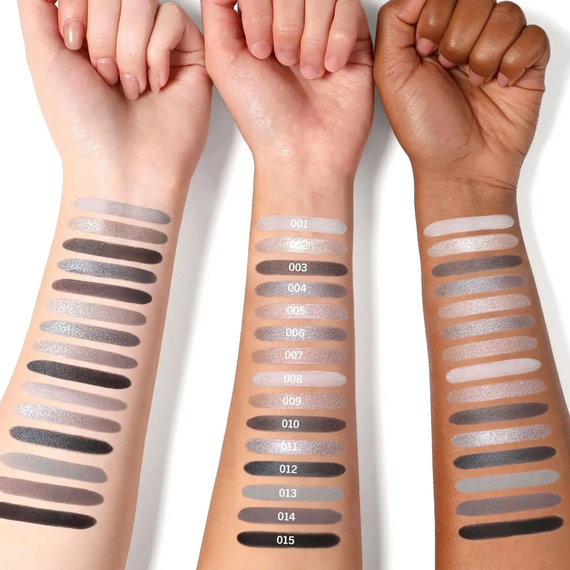 6 mattasävyä, joissa on runsas pigmentti sekä höyhenenkevyt koostumus, sopivat loistavasti pohjasävyiksi. 9 shimmer-/metallisävyä luovat dramaattisia smokey eye -meikkejä ja näyttäviä glam-lookeja.