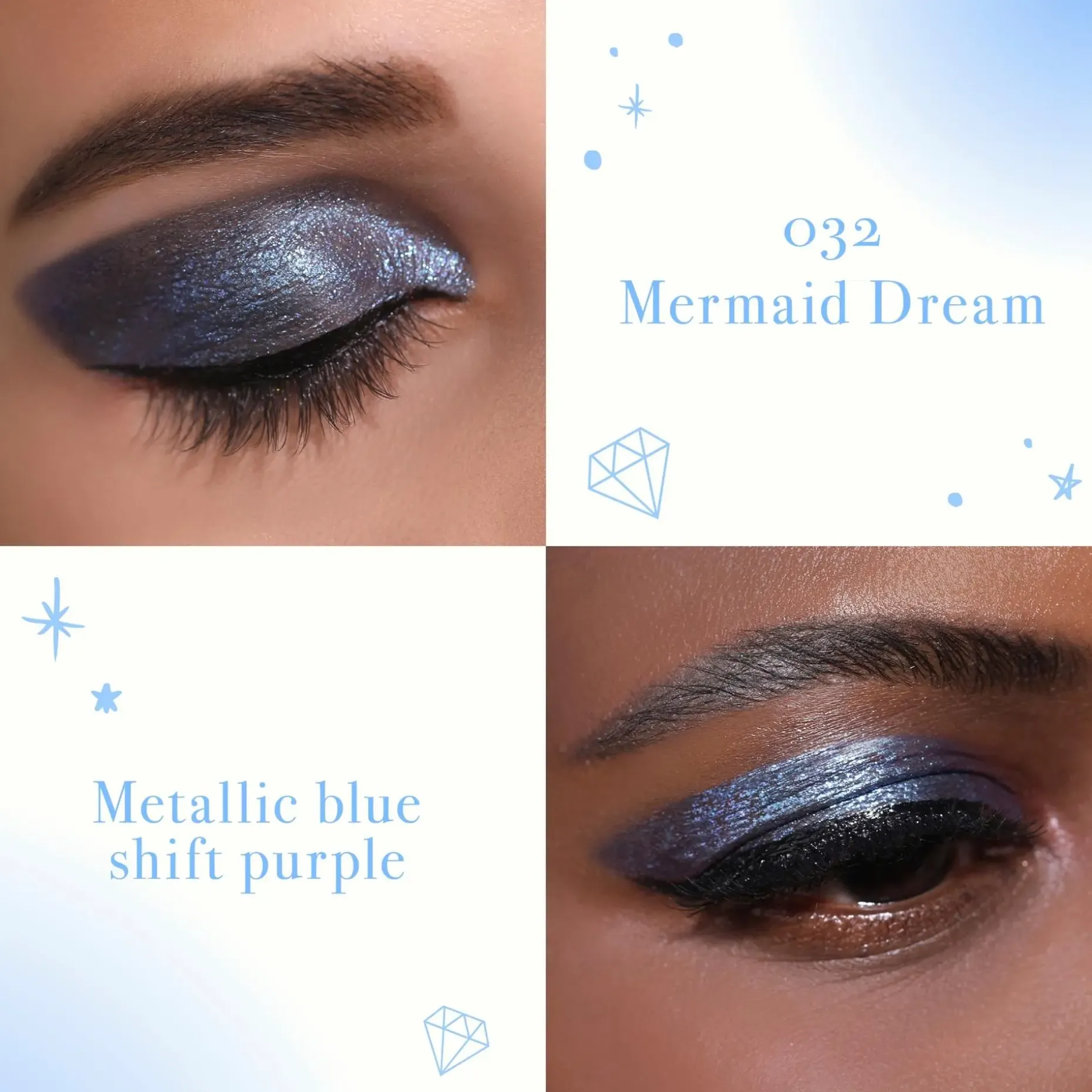 Nestemäisen luomivärin intensiiviset pigmentit yhdistettynä kimalteleviin hiukkasiin luovat moniulotteisen ilmeen, joka korostaa silmiesi kauneutta. Anna monisävyisten kimalteiden ja hohtavien glitterien lumota ympäristösi, päivin ja öin.