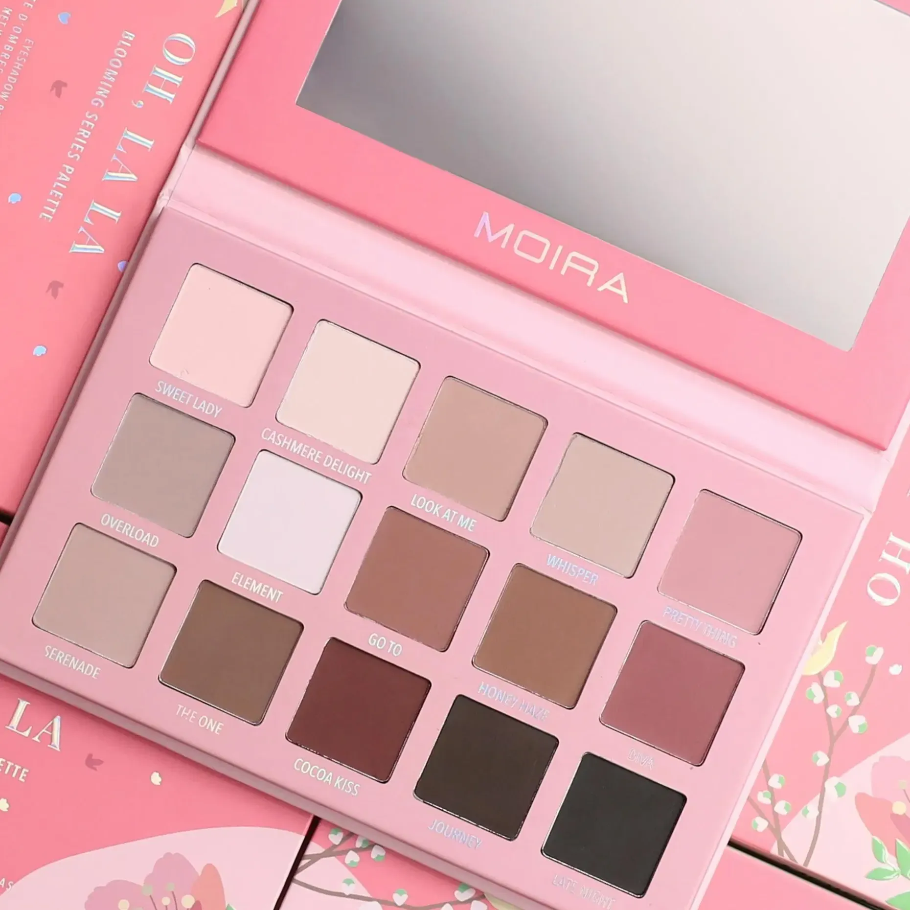 Ihastu Oh, La La -luomiväripalettiin! Tämä talkiton paletti sisältää 15 upeaa, pehmeää vaaleanpunaista ja neutraalia sävyä, jotka sopivat täydellisesti sekä luonnollisiin päivämeikkeihin että näyttäviin iltameikkeihin. Hyödynnä tätä monipuolista kokoelmaa ja olet aina kuvauksellinen missä tahansa liikutkin!