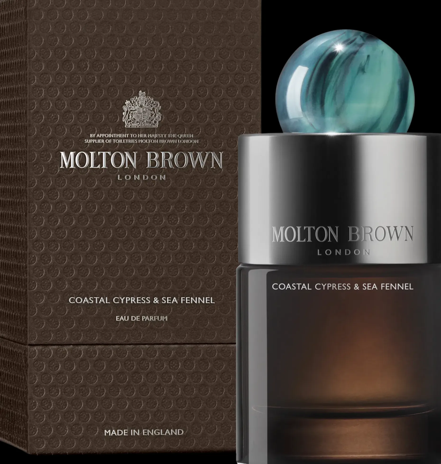 Molton Brown Coastal Cypress & Sea Fennel EdP on raikas meren inspiroima Eau de Parfum. Se avautuu viikunanlehden ja inkiväärin aromaattisilla nuoteilla edeten sydäntuoksun merellisiin ja jasmiinin nuotteihin ja tuoden lopuksi esiin syvän ja täyteläisen pohjatuoksun nahkavivahteet. Ilahduttavaa kaunista pulloa koristaa ainutlaatuinen pyöreä korkki.