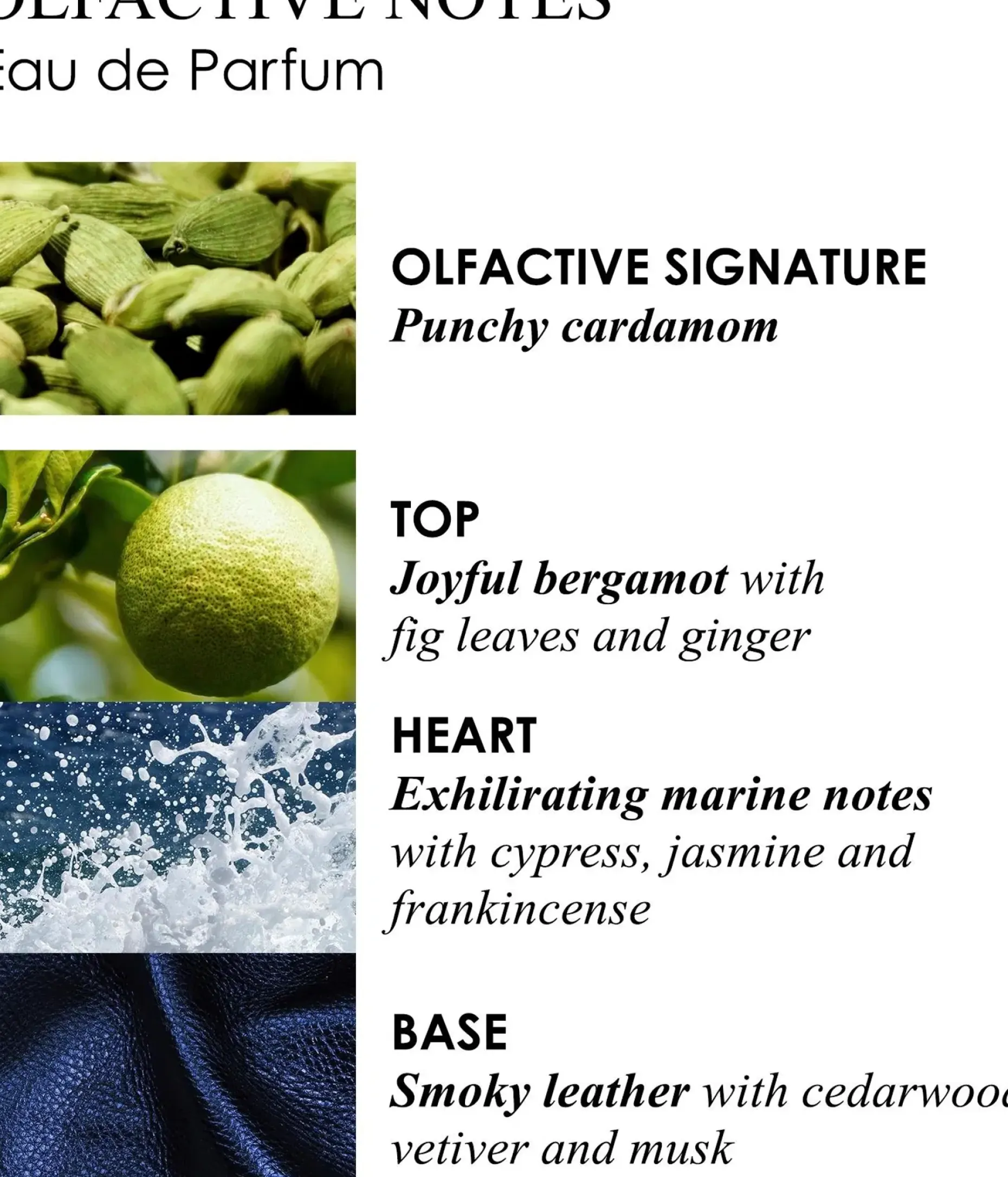 Sydän: merelliset nuotit, sypressi, jasmiini, savu