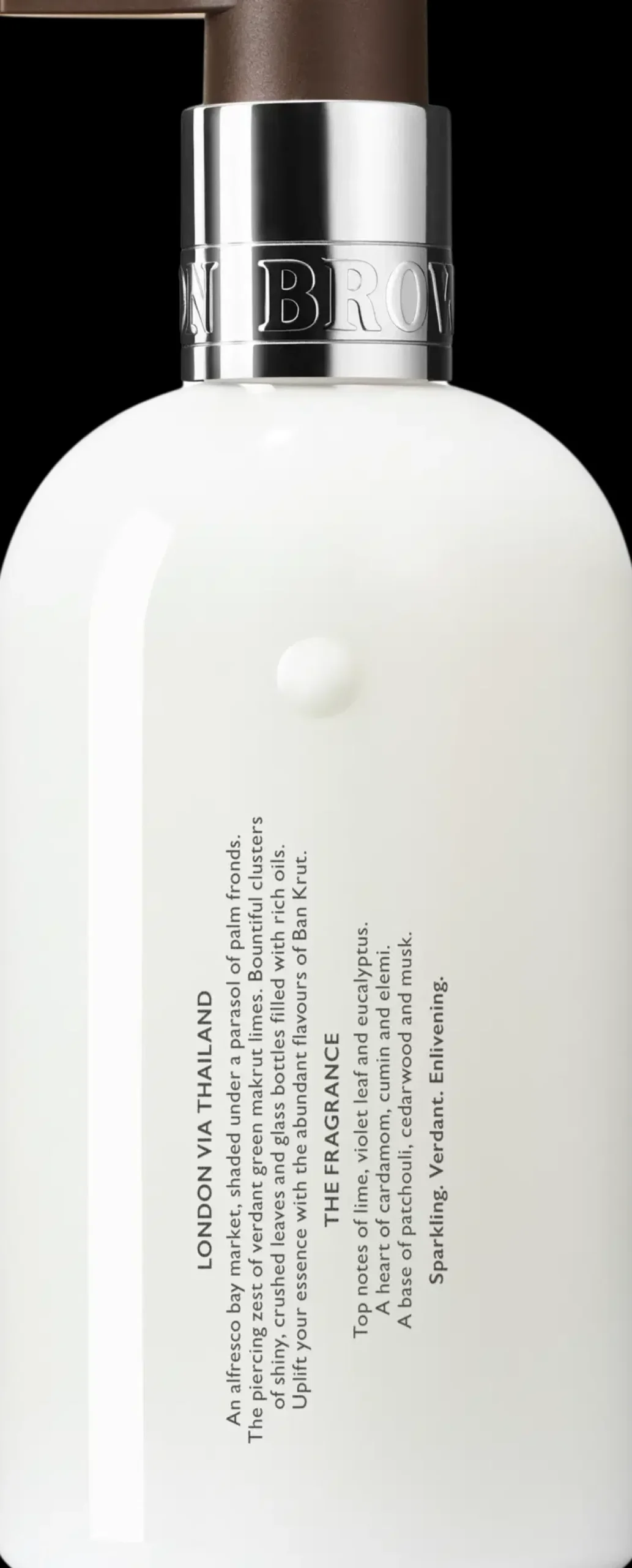 Molton Brown Lime & Patchouli käsiemulsio sisältää ihoa hoitavia ainesosia, jotka kosteuttavat, ravitsevat ja suojaavat käsiä. Sisältää eloisan limetin, virkistävän eukalyptuksen ja täyteläisen patsulin nuotteja. Käytä yhdessä yhteensopivan Molton Brown -käsisaippuan kanssa vahvistaaksesi virkistäviä mutta syvän mausteisia nuotteja.