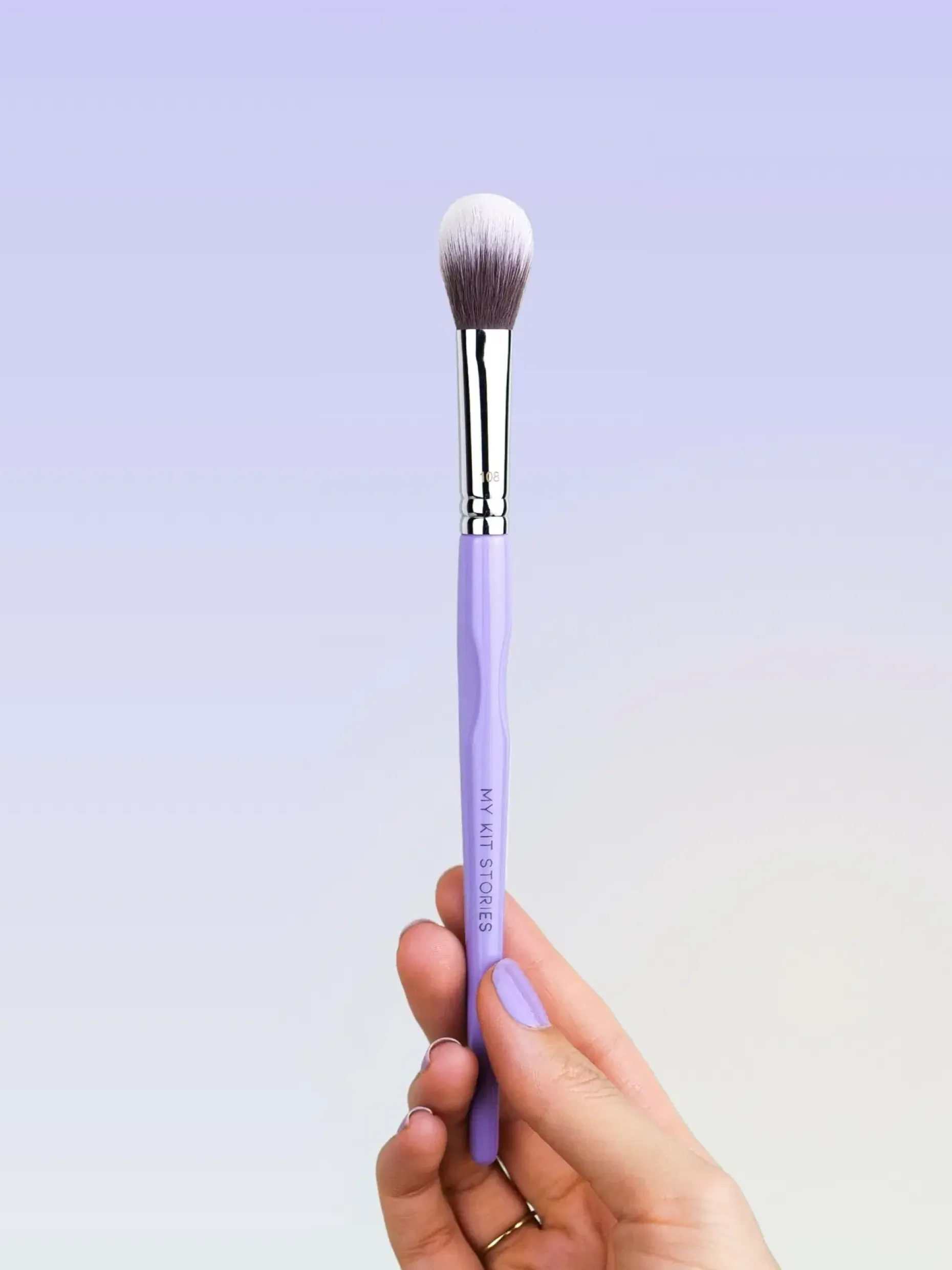 My Kit Stories -meikkisivellin 108 soveltuu parhaiten puuterimaisten tai nestemäisten korostus- ja poskipunatuotteiden lisäämiseen ja häivyttämiseen! Siveltimen pehmeillä harjaksilla ja melko kapeahkolla kärjellä on helppo häivyttää tuotteet kasvojen korkeimmilla alueilla. Käytä sivellintä myös puuterin lisäämiseen silloin, kun et halua tuotetta koko kasvoille, vaan valita tarkemmin ne alueet joissa puuteri on tarpeen. Harjasten pituus 28mm Siveltimen kokonaispituus 19,8cm My Kit Stories -siveltimet ovat suunniteltu huolellisesti, jokainen yksityiskohta tarkkaan huomioiden. Niiden kauniit, ergonomisesti muotoillut puuvarret tarjoavat tukevan otteen, ja laadukas harjasosa säilyttää hyvin muotonsa käytöstä toiseen. Siveltimien korkealaatuinen synteettinen karva tuntuu silkkisen pehmeältä iholla ja toimii käytettäväksi niin nestemäisten, voidemaisten kuin puuterimaisten tuotteiden kanssa. Muistathan pestä ja huoltaa siveltimiä. Käytä siveltimille tarkoitettua saippuaa tai nestettä, muotoile harjakset muotoonsa ja jätä ne ilmavasti lappeelleen kuivumaan.