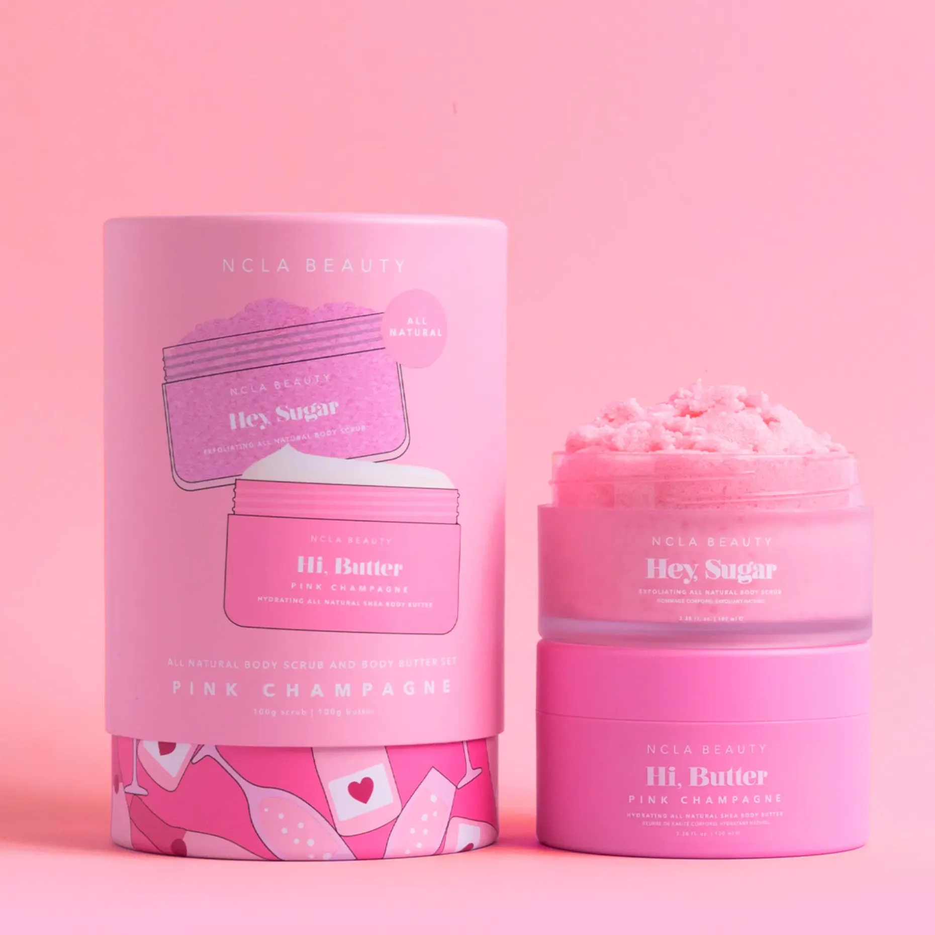 Luonnonkosmetiikan vartalonhoitosetti pirskahtelevalla ja makealla pinkin kuohuvan tuoksulla! Sisältää vartalokuorinnan ja vartalovoin, jotka tekevät ihosta ihanan sileän vain minuuteissa. Tuotteet sisältävät mm. shea-, mango- ja kaakaovoita sekä luomulaatuista hampunsiemenöljyä, jotka tekevät ihosta ihanan sileän, hehkuvan ja kosteutetun.