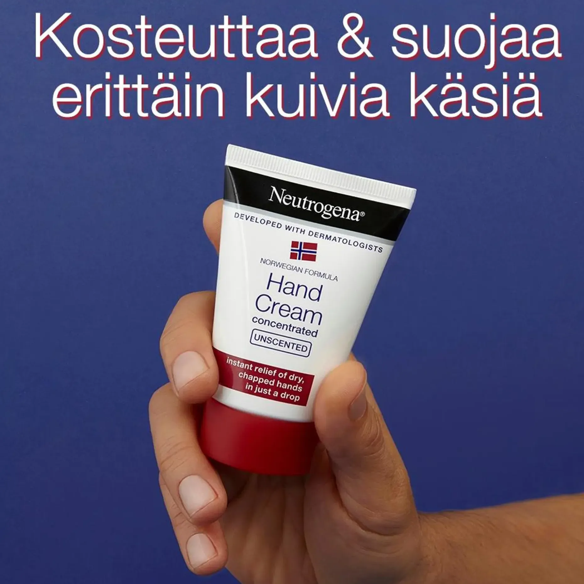 Hajustamaton Neutrogena Norwegian Formula® Concentrated Hand Cream Unscented -käsivoide antaa välitöstä ja pitkäkestoista lievitystä erittäin kuiville käsille. Runsaasti glyseriiniä sisältävä koostumus kosteuttaa 24 tunnin ajan ja tekee käsistä huomattavasti pehmeämmät ja sileämmät, jopa kaikkein ankarimmissakin olosuhteissa.