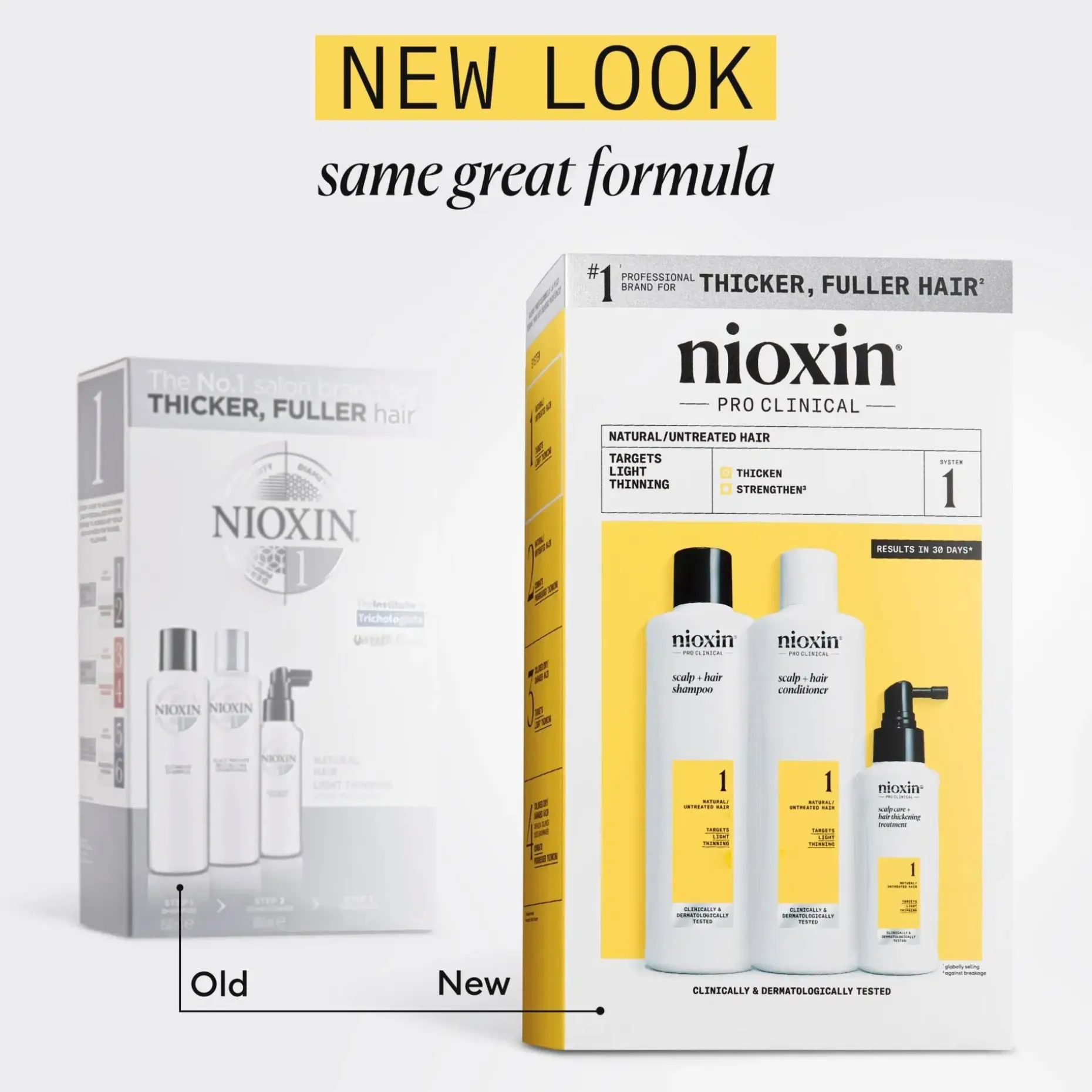 Nioxin System 1 Loyalty Kit -hiustenhoitojärjestelmä käsittelemättömille, lievästi ohentuneille hiuksille. Ainutlaatuinen kolmen hiustenhoitotuotteen setti on kehitetty erityisesti tuuhentamaan hiuksia. Nioxin System 1 raikastaa hiuspohjaa, vähentää katkeilun aiheuttamaa hiustenlähtöä, vahvistaa hiuksia ja antaa tervettä kiiltoa. Nioxin Cleanser -shampoo poistaa lian, talin ja muut ympäristöjäämät hiuspohjasta ja hiuksista. Nioxin Scalp Therapy -hoitoaine on kevyt hoitoaine, joka auttaa vahvistamaan hiuksia ja kosteuttaa hiuksia tyvestä latvaan. Nioxin Scalp & Hair Treatment raikastaa hiuspohjaa ja auttaa tekemään hiuksista tuuheammat lisäämällä jokaisen hiuksen paksuutta. Pakkauksen on kliinisesti osoitettu vähentävän katkeilun aiheuttamaa hiustenlähtöä jopa 91 %**.